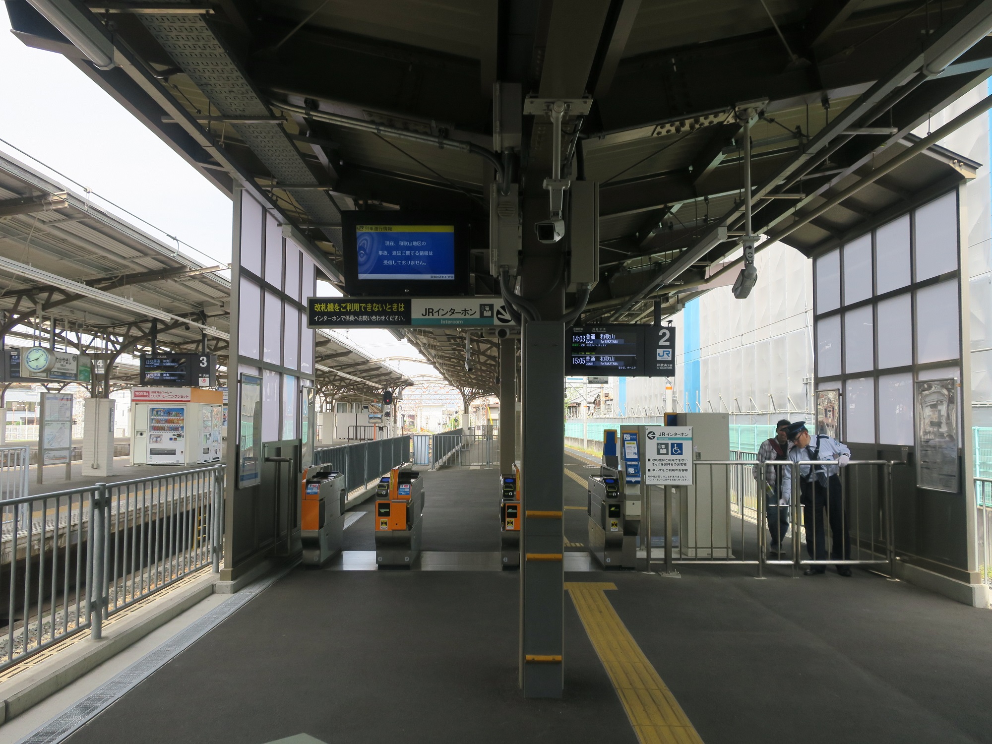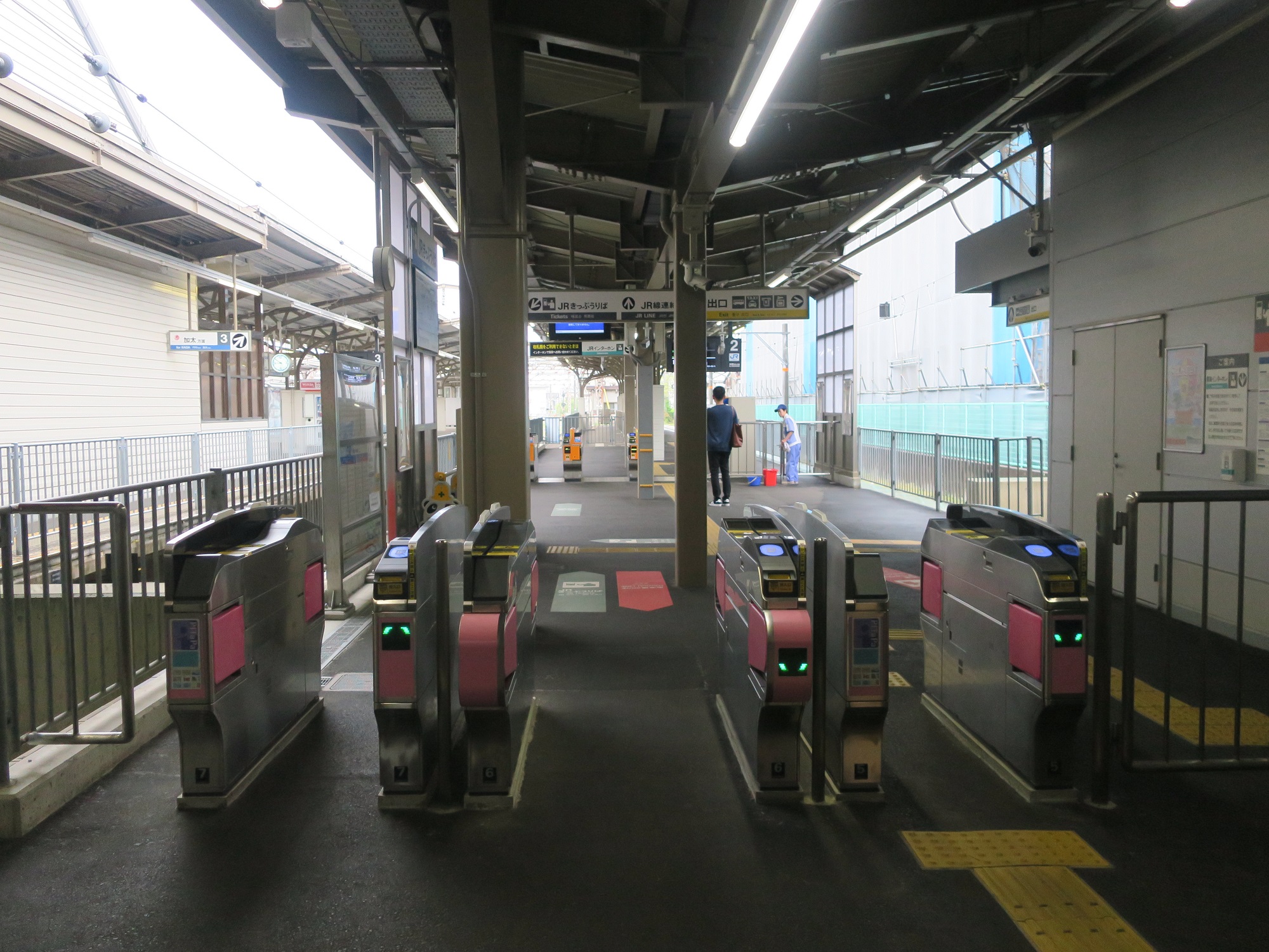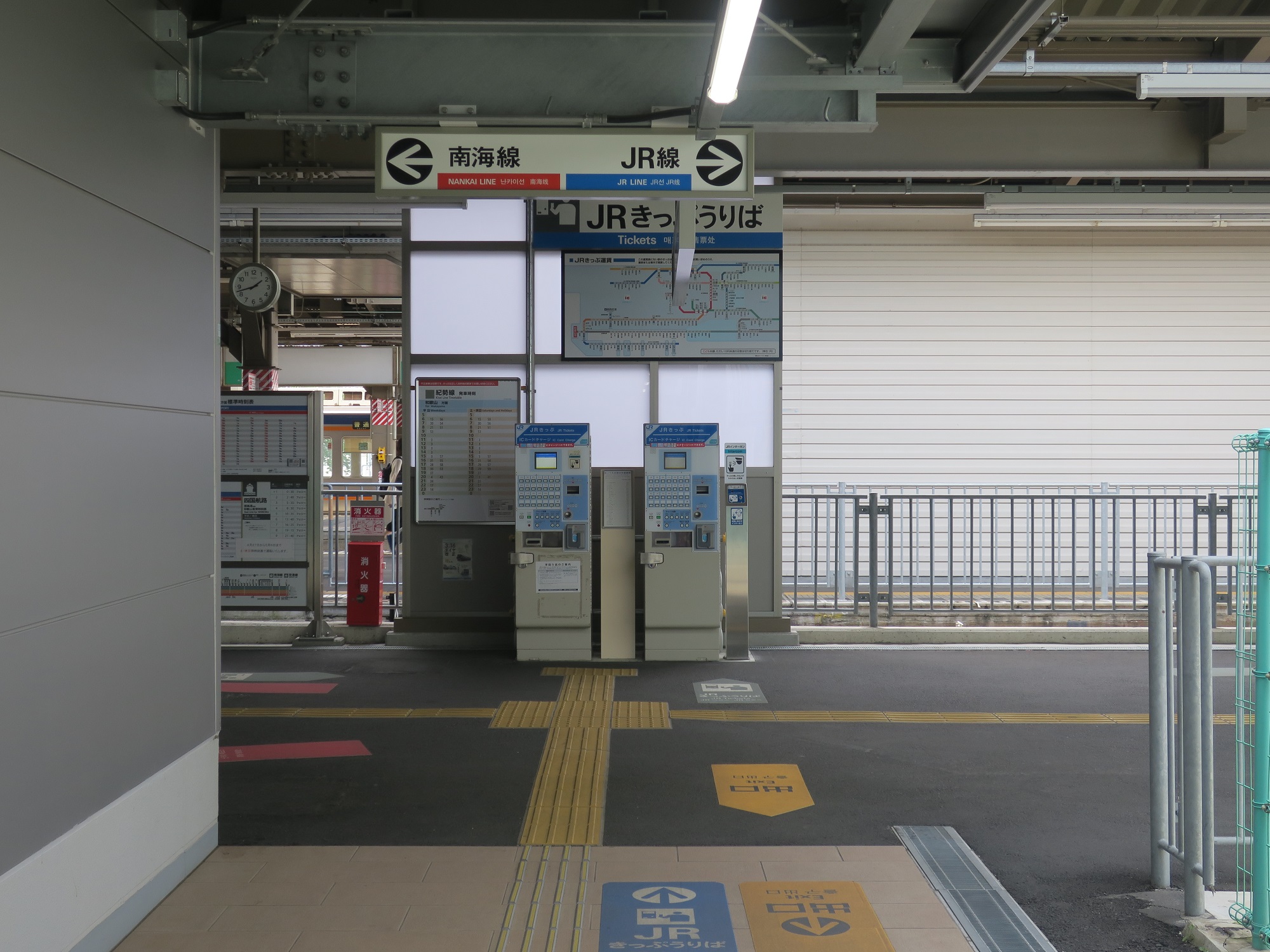 南海線の駅構内から見ると、こんな感じ。南海線の自動改札機(写真手前)を出た後、JR線の自動改札機(写真奥)を通ります。