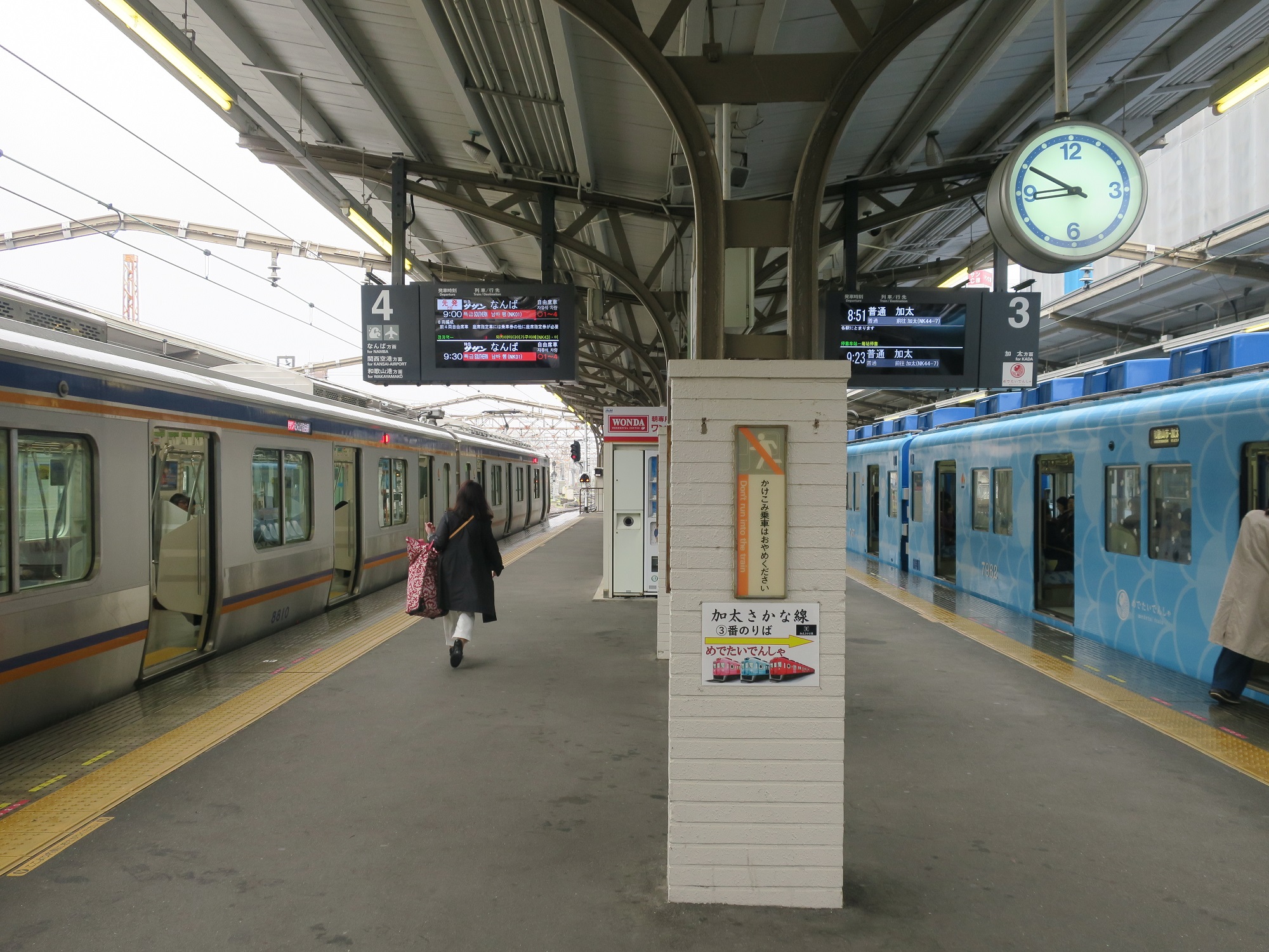 3番線・4番線です。3番線は南海加太線で、加太方面に行く列車が発着します。4番線は南海本線で、泉佐野・岸和田・堺・なんば方面に行く列車が発着します。