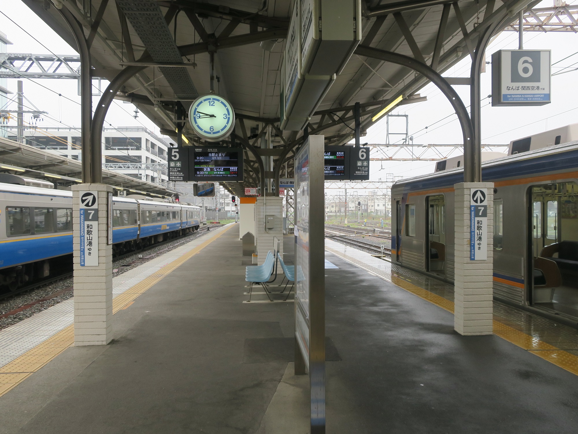 5番線・6番線です。南海本線で、泉佐野・岸和田・堺・なんば方面に行く列車が発着します。