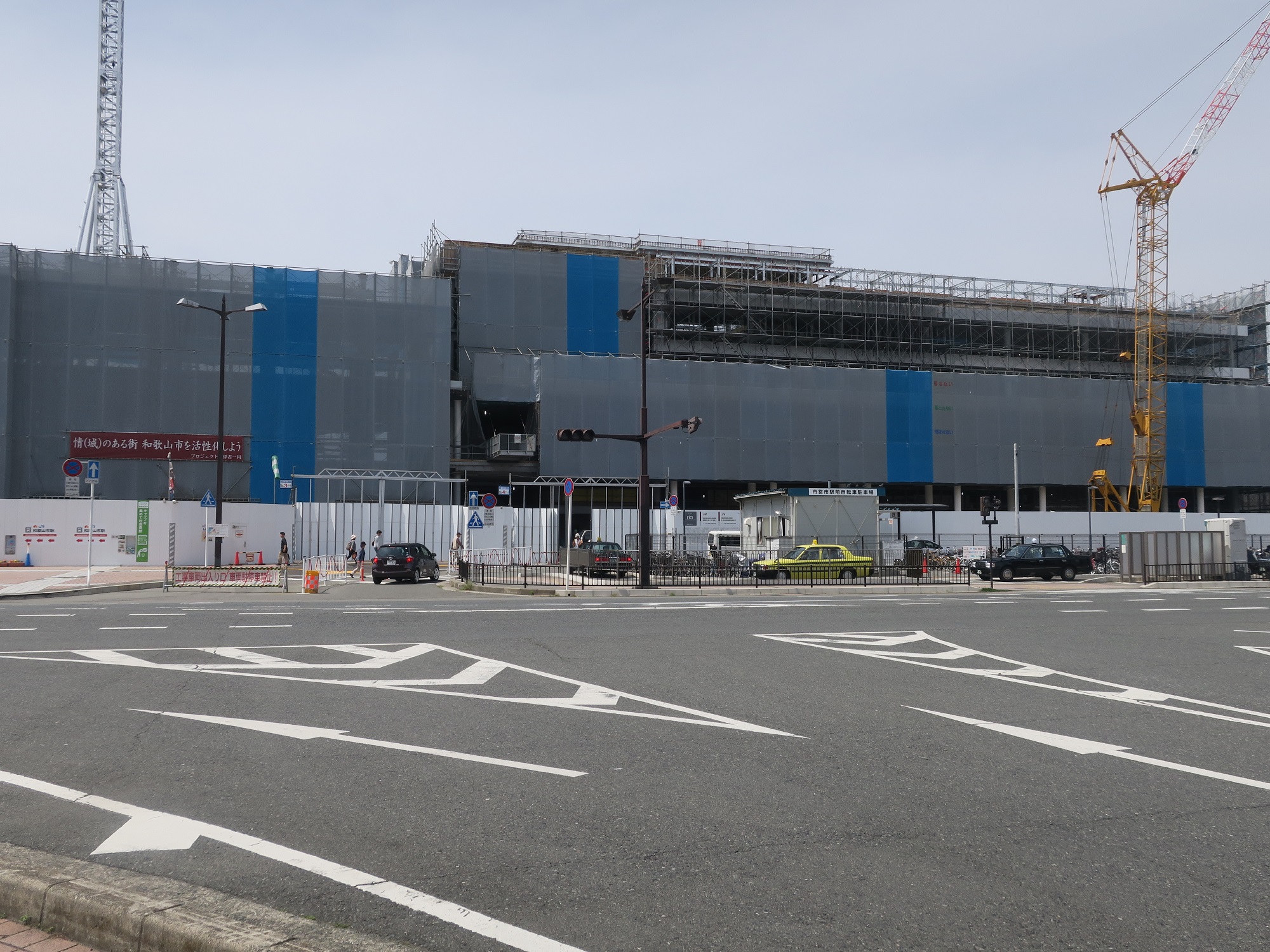 駅舎跡地です。かつてここには高島屋があったのですが、すでに閉店してしまいました。現在、新しい駅ビルが絶賛工事中です。手前にタクシー乗り場があります。