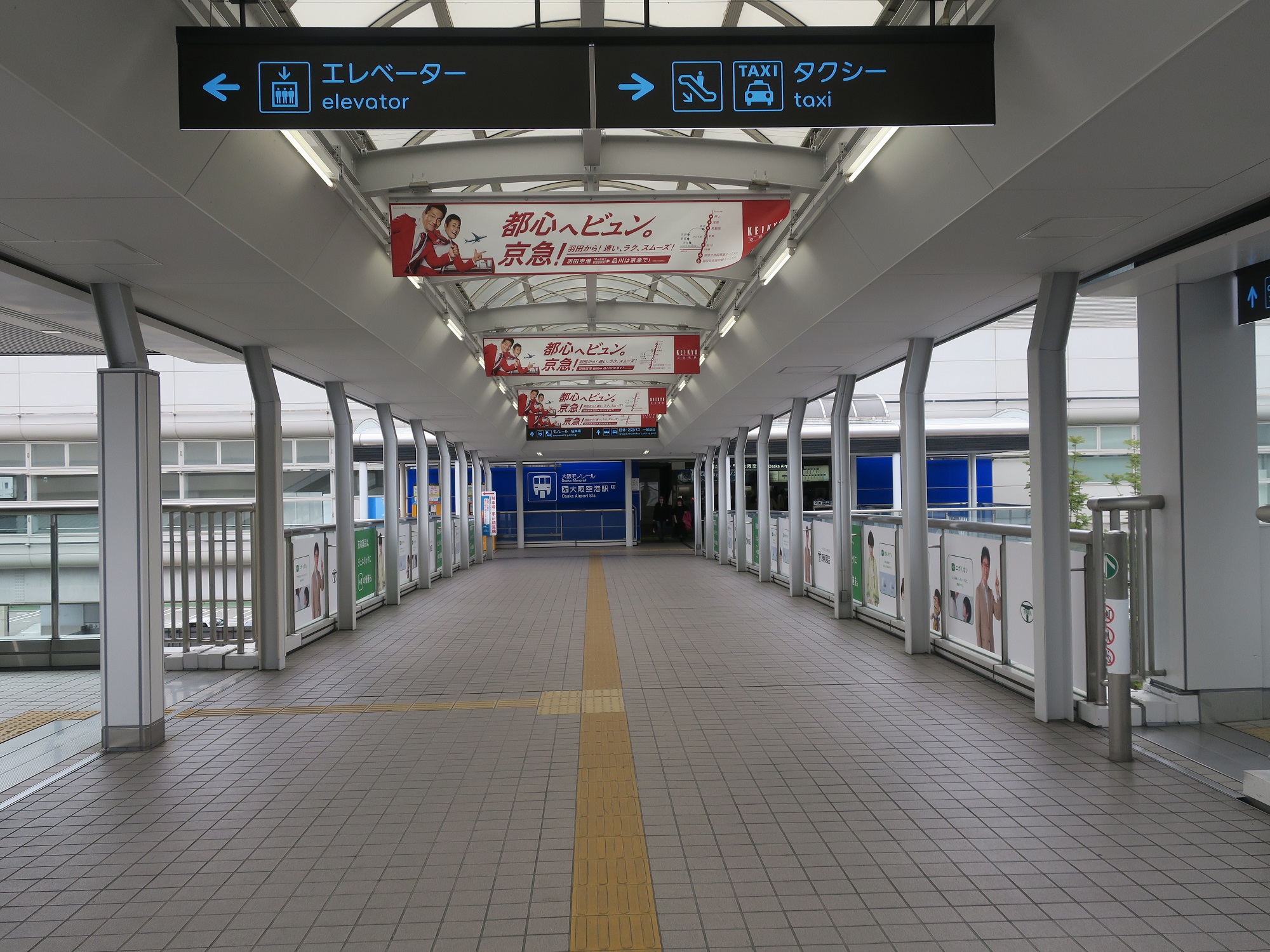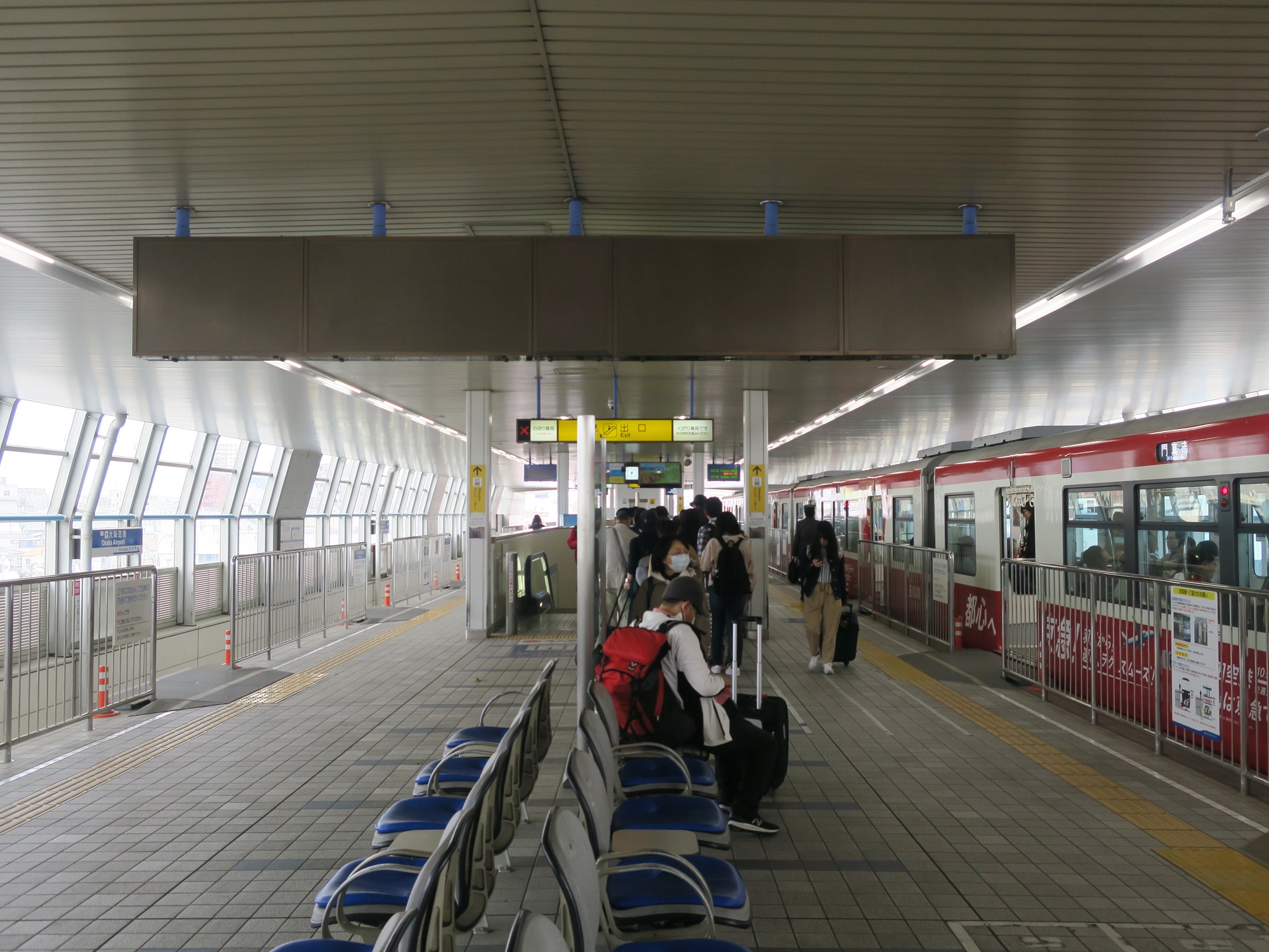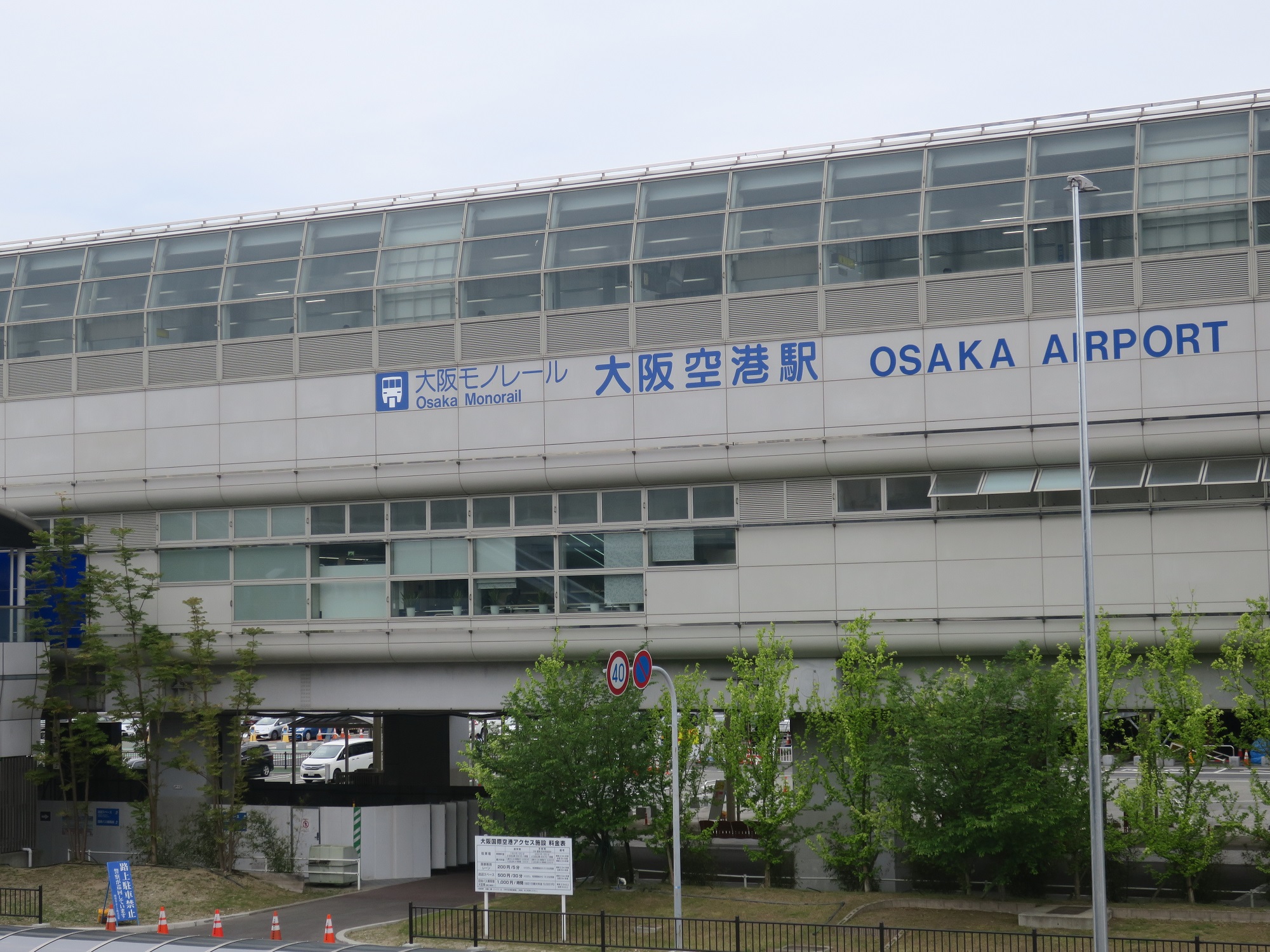 大阪モノレールの大阪空港駅です。大阪国際空港から各地へ行くには、まずはリムジンバスに乗るか、この駅から大阪モノレールに乗ります。