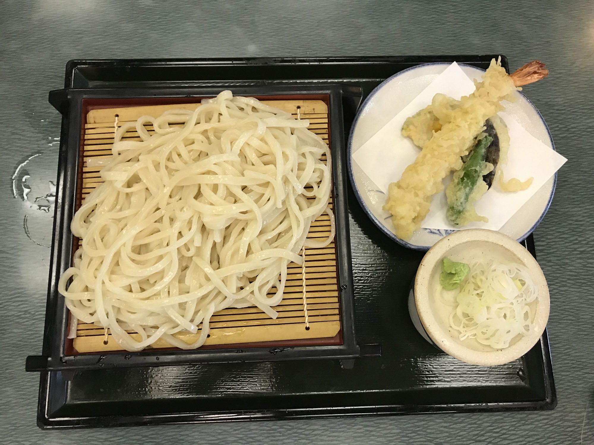 続いて頼んだのが、天ざるうどん。うどんを頼むと熊谷うどんが出てくるらしく、「はて、熊谷うどんって何?」ってことで頼んでみました。