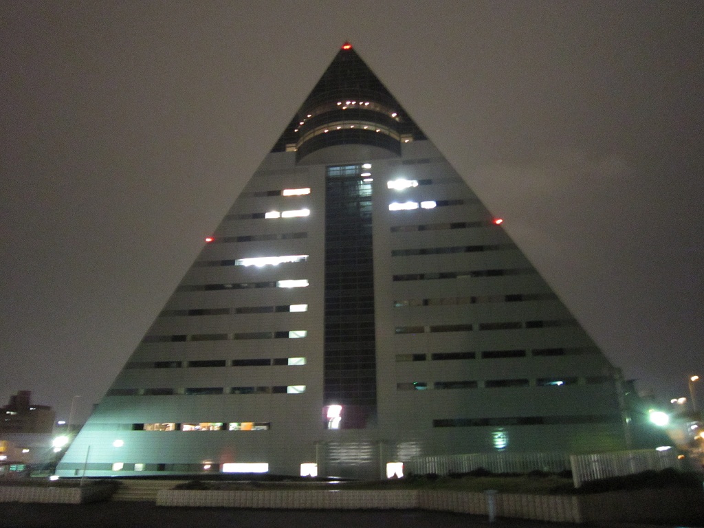 でもって、アスパムに夜行ってみると、こんな感じです。一番上の丸いところが、展望台になっています。何気に、青森で一番高いビルなんじゃないかな???