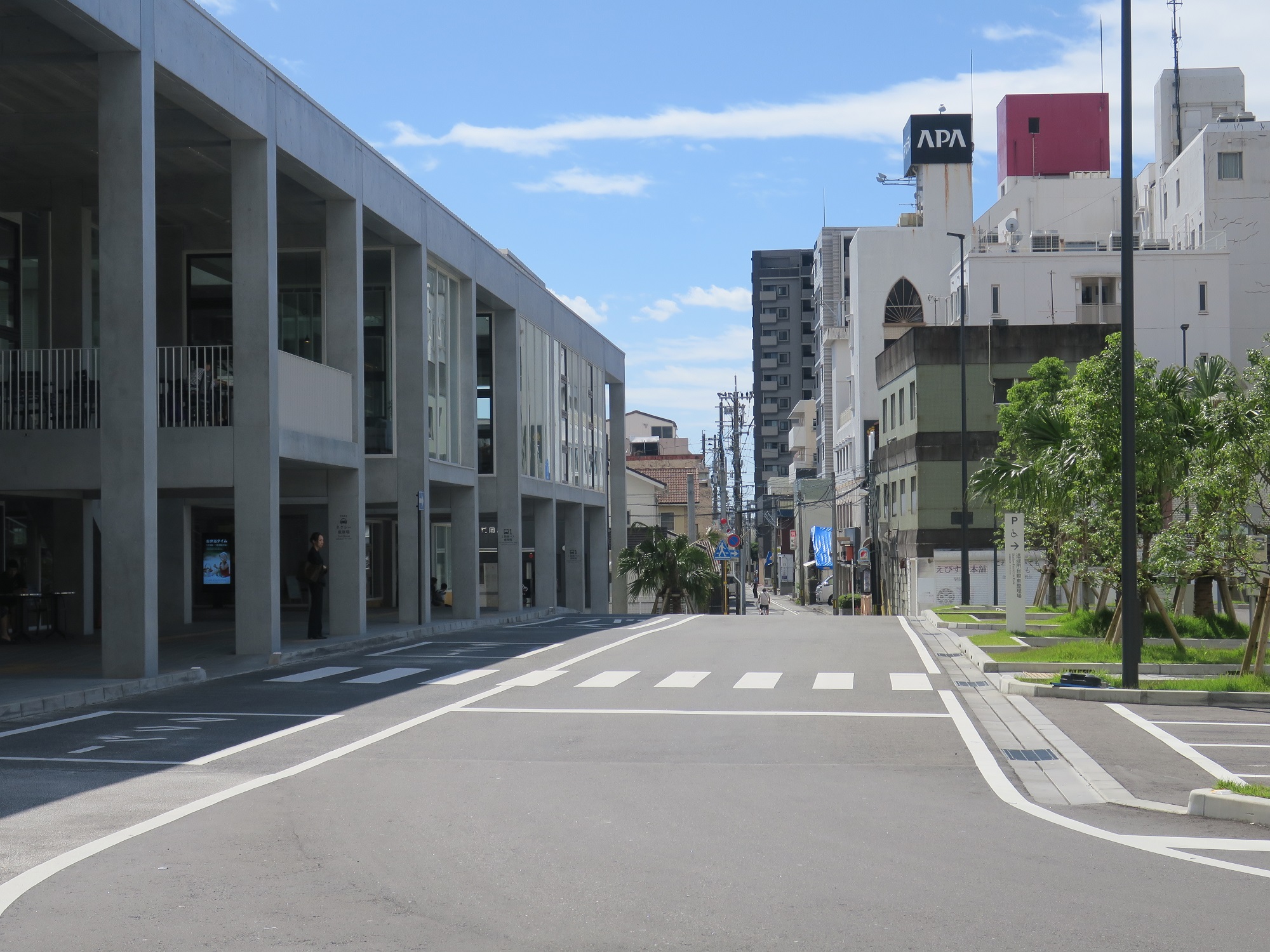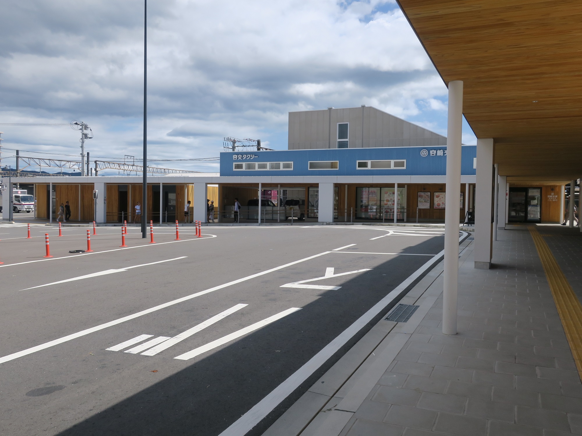 タクシー乗り場です・・・が、よーく見ると一番奥に、路線バス乗り場が見えます。