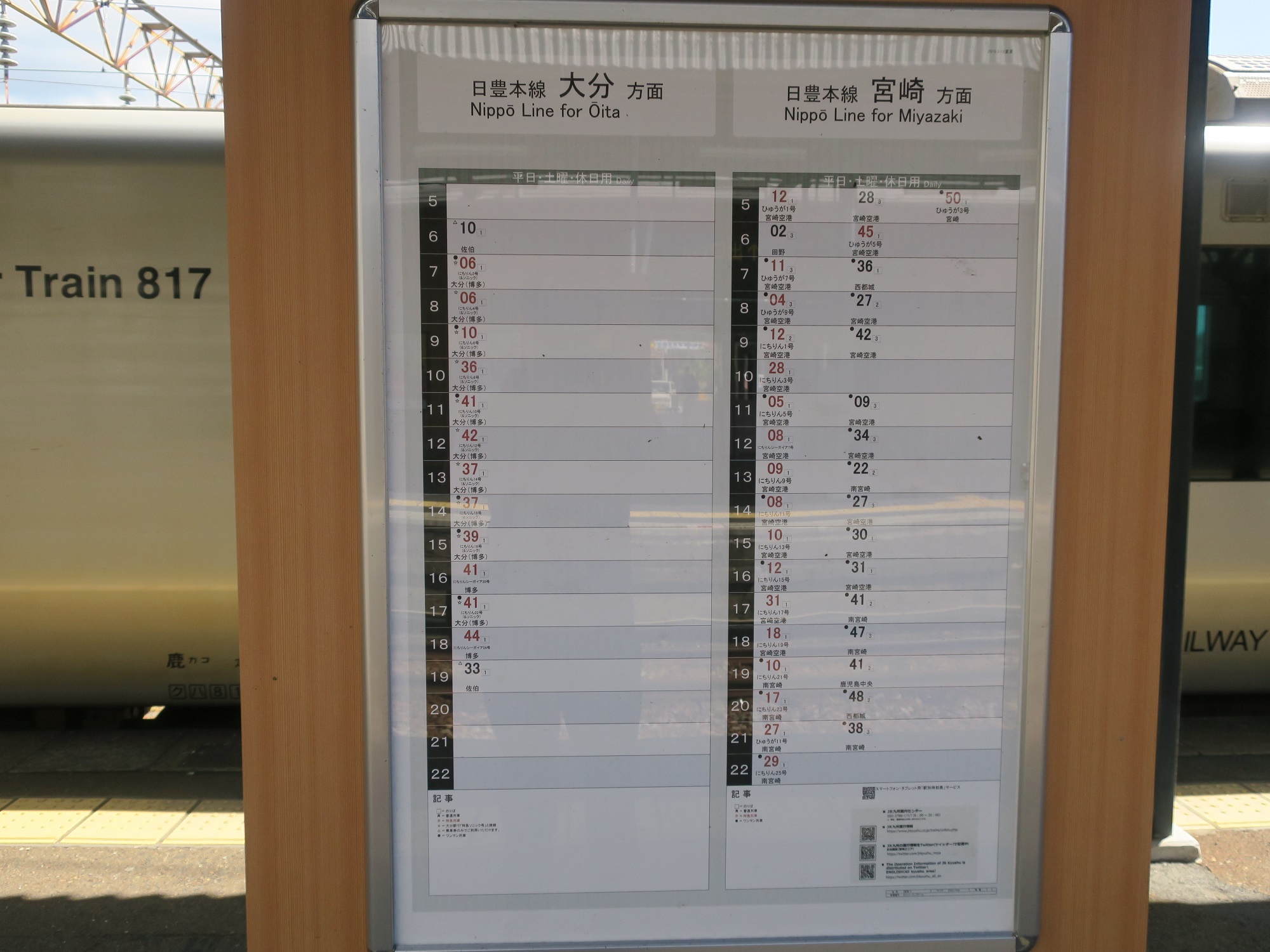 日豊本線で、宮崎方面からの普通列車は、大抵この駅どまりです。この駅から大分方面は、極端に列車の本数が少なくなります。普通列車はたったの2本。こうなってくると、本線とは名ばかりで、完全にローカル線ですね。