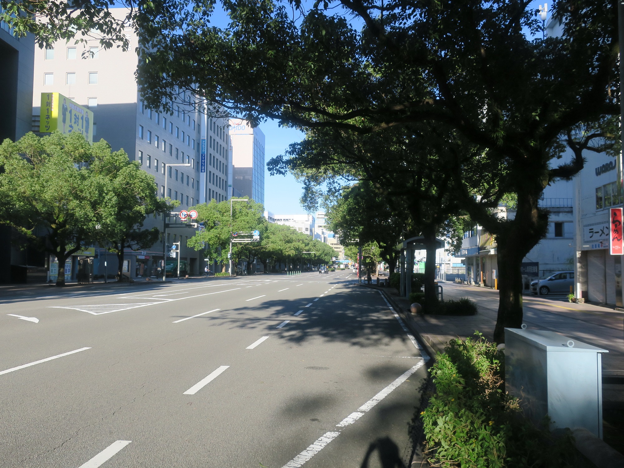 橘通りの繁華街のほぼ真ん中あたり、橘通り2丁目付近です。
