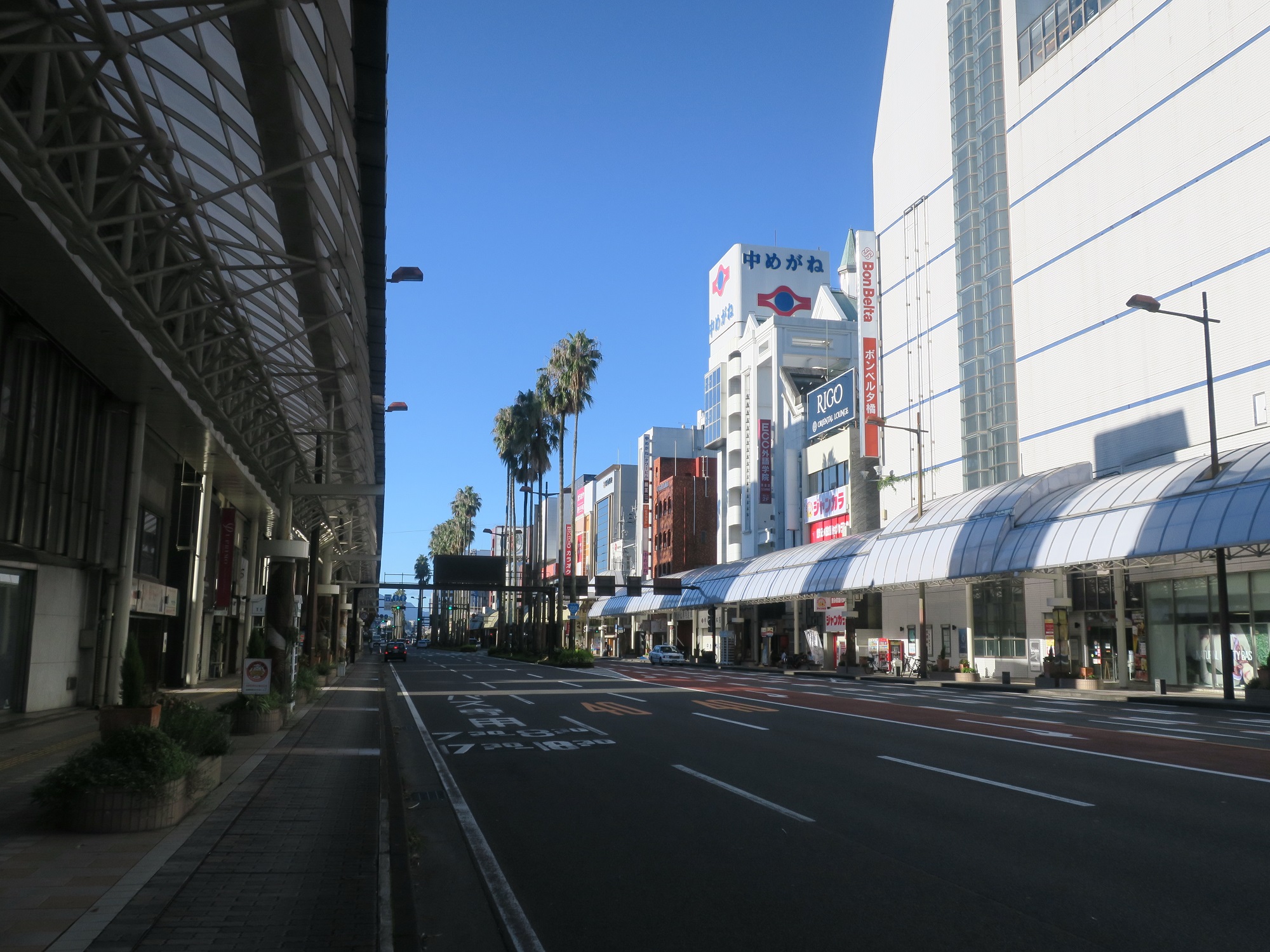 宮崎市の繁華街は、橘通りです。宮崎駅から歩いて10分位のところにあります。充分歩ける距離なのですが、バスがいっぱい走っているので、歩くのが面倒臭い方はバスでもいいでしょう。