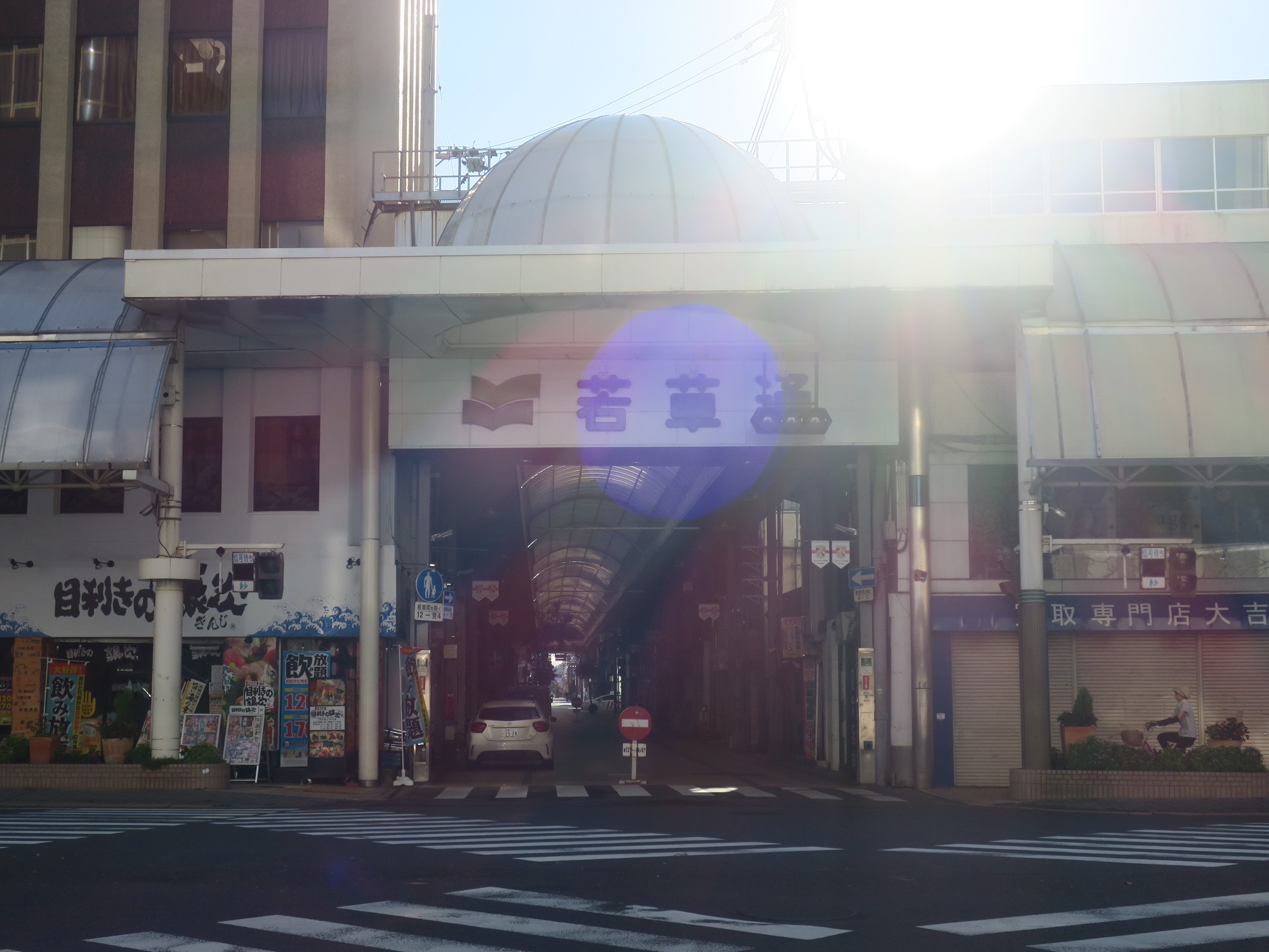 若葉通のアーケード街です。撮影したのが朝早かったので、お店は開いていませんでした。