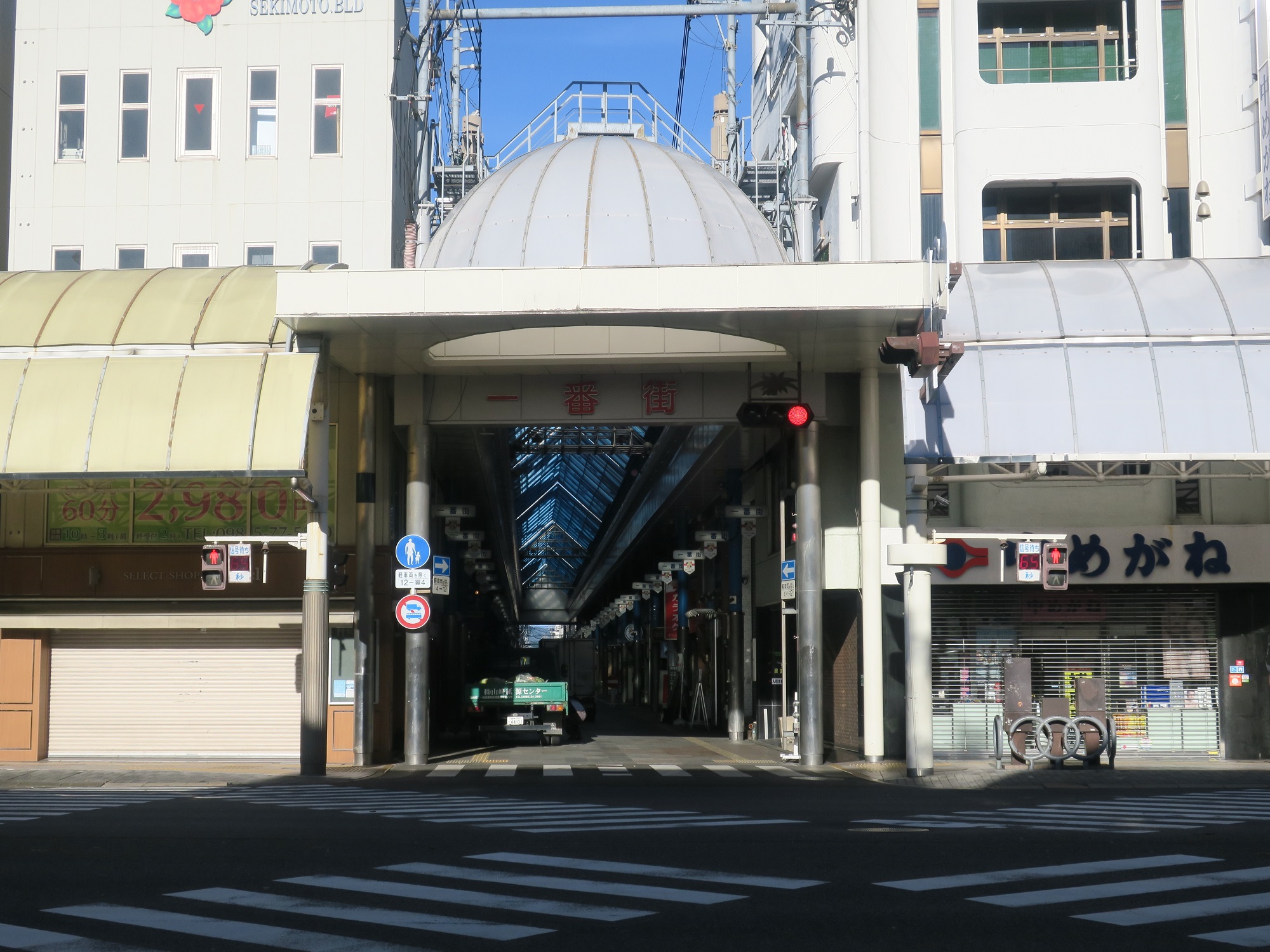 一番街です。若草通と同様、アーケード街になっています。この先にニシタチがあるせいか、飲食店が多い印象です。ちなみに、この若草通に宮崎ここちやがあります。