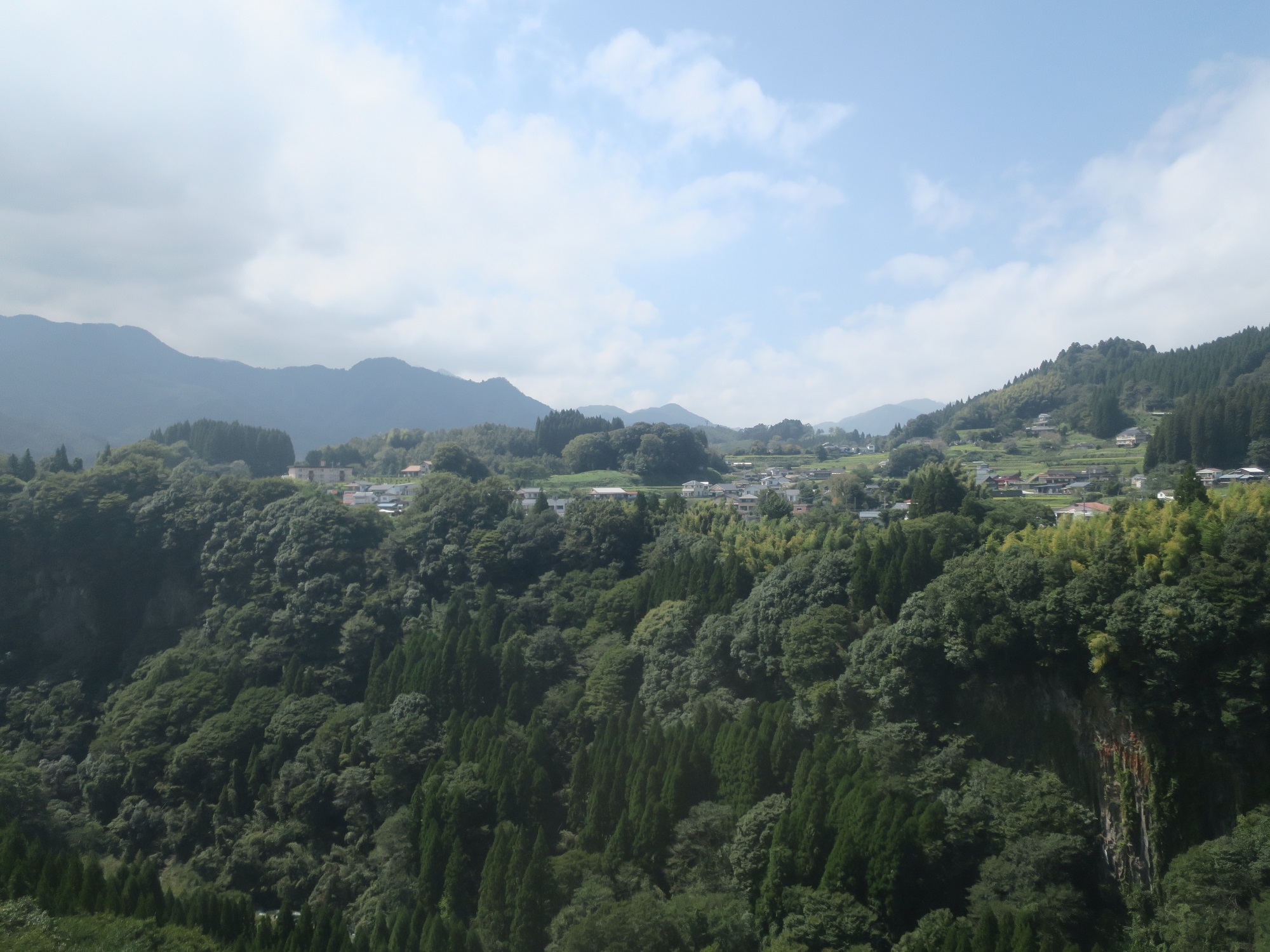車窓からの景色は、こんな感じ。バスは渓谷を縫うように進みます。