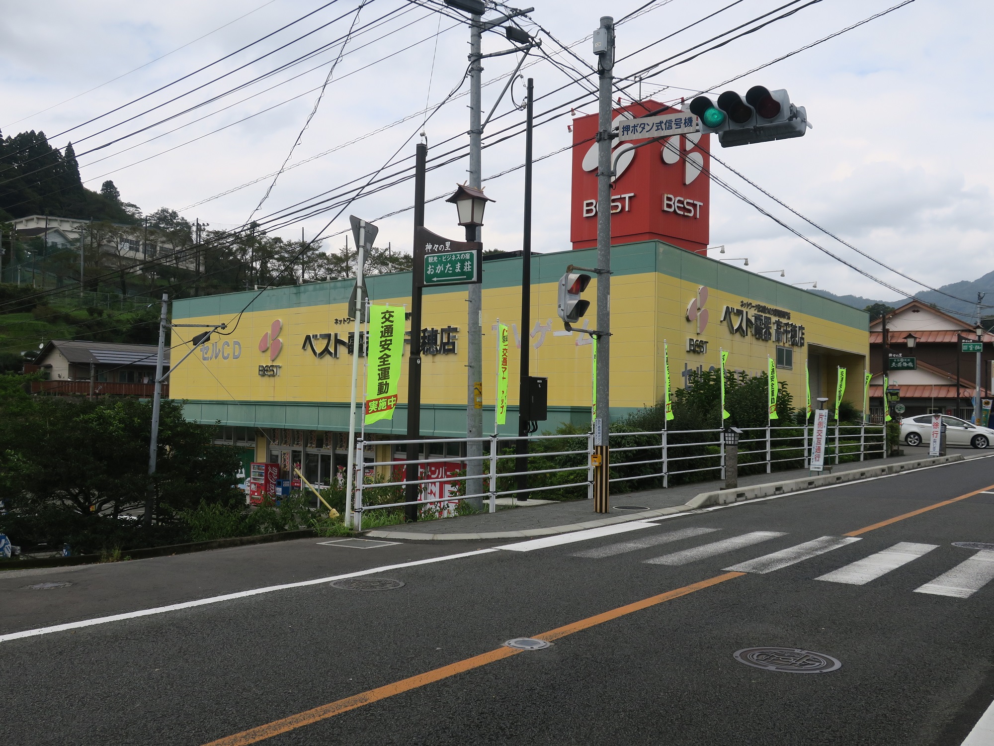 更に歩くと、ベスト電器 高千穂店がありました。普通だったら営業していてもおかしくない時間帯なのに、シャッターが閉まっています。