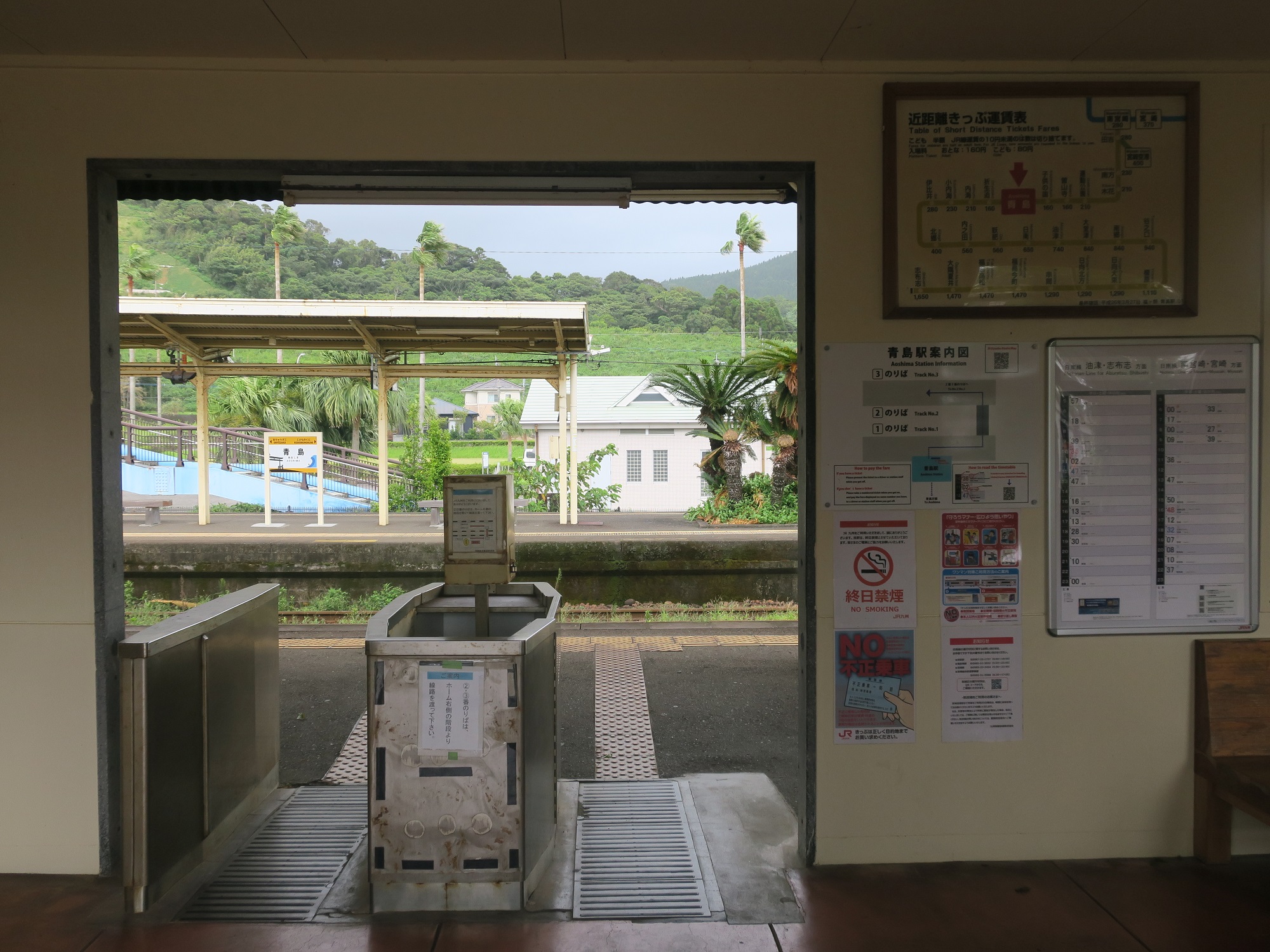 改札口を駅舎内から見るとこんな感じ。注意点として、SUGOCA・nimoca・Suica・PASMOなどの交通系ICカードは使えません。列車に乗るときに整理券を取り、運賃は列車を降りるときに支払います。