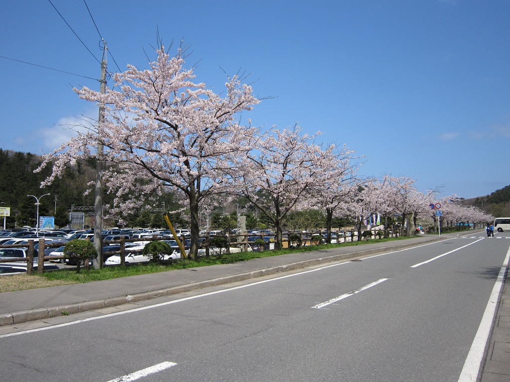 浅虫水族館の前は、こんな感じ。桜並木ですね。なので、ちょっとした桜の名所になってたりします。じゃあ、ここで花見の宴会をしている人がいたのかというと・・・いませんでした。そりゃあそうですよねぇ。ここって、水族館の敷地内ですからね。