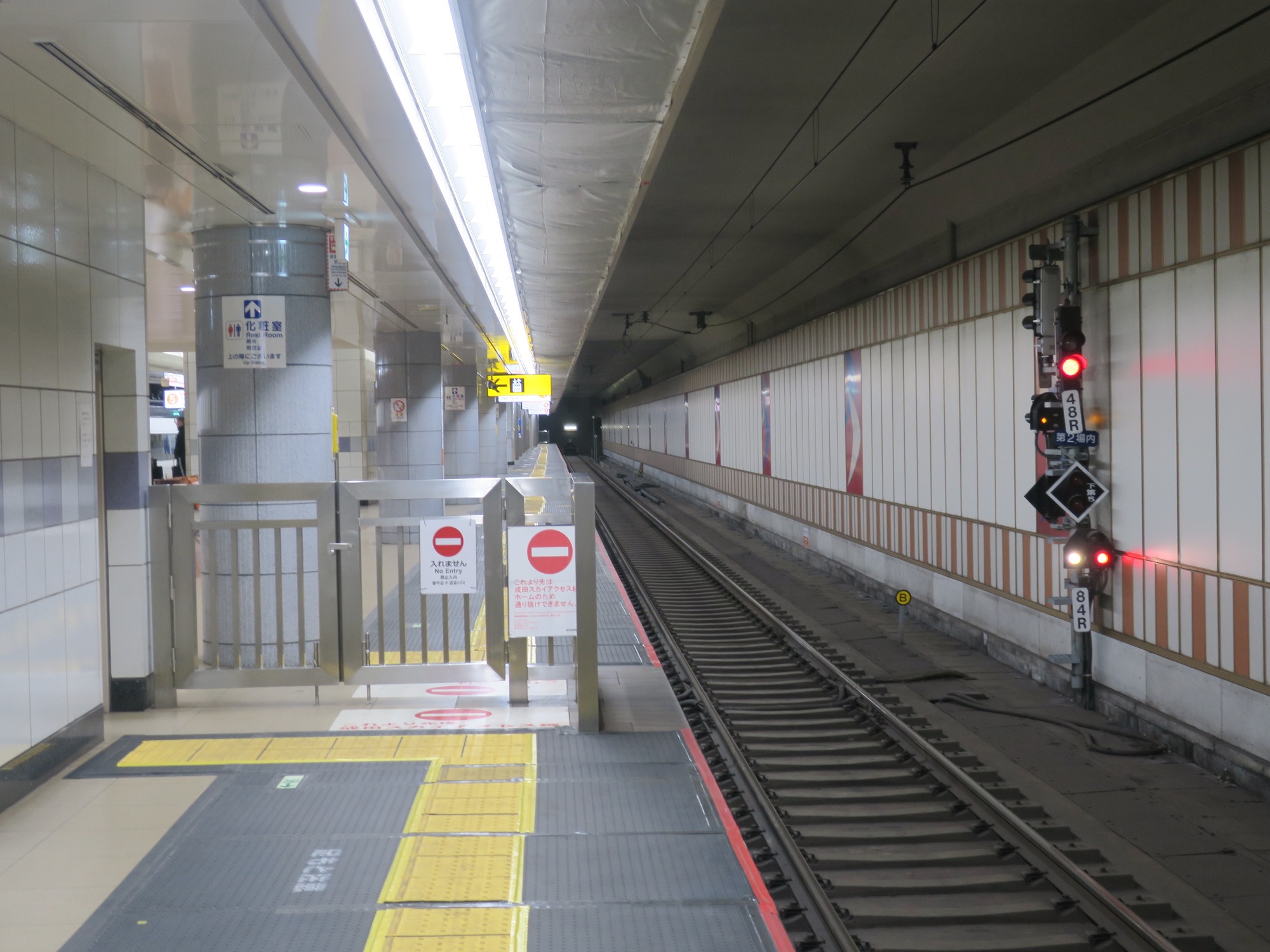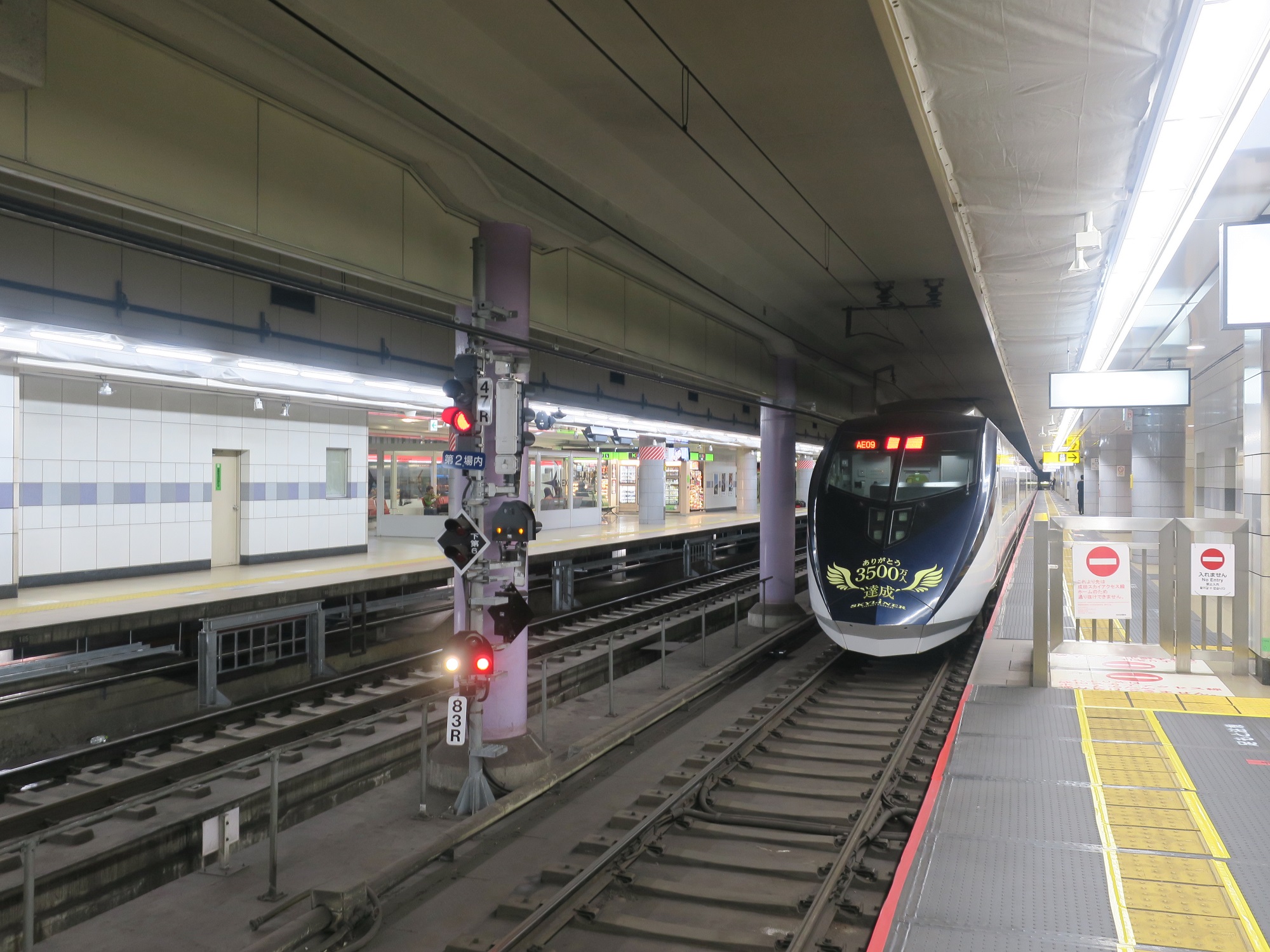 京成本線 成田空港駅 3番線と5番線の間にはバリケードがあります