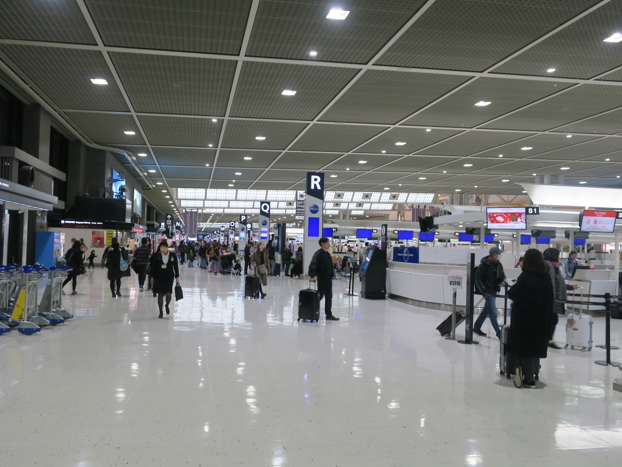 3階にある国際線出発ロビーです。第2旅客ターミナルは、主にJALをはじめとして、ワンワールドに所属している航空会社が発着します。ロビー全体が1つの空間にまとまっているのが、第1旅客ターミナルとの決定的な違いですね。