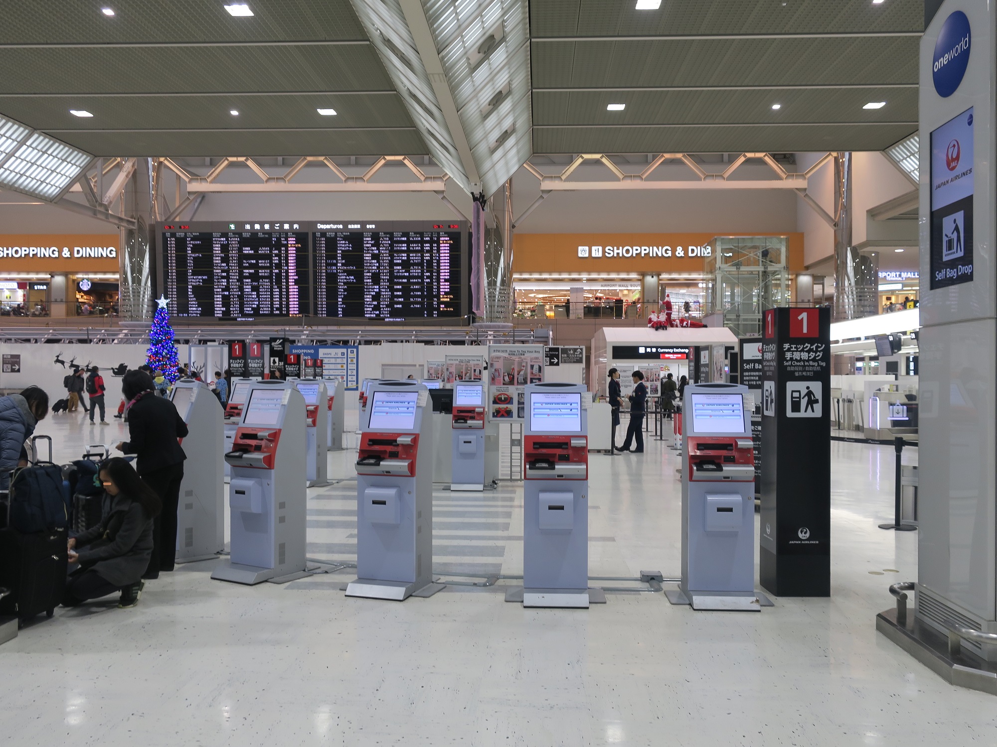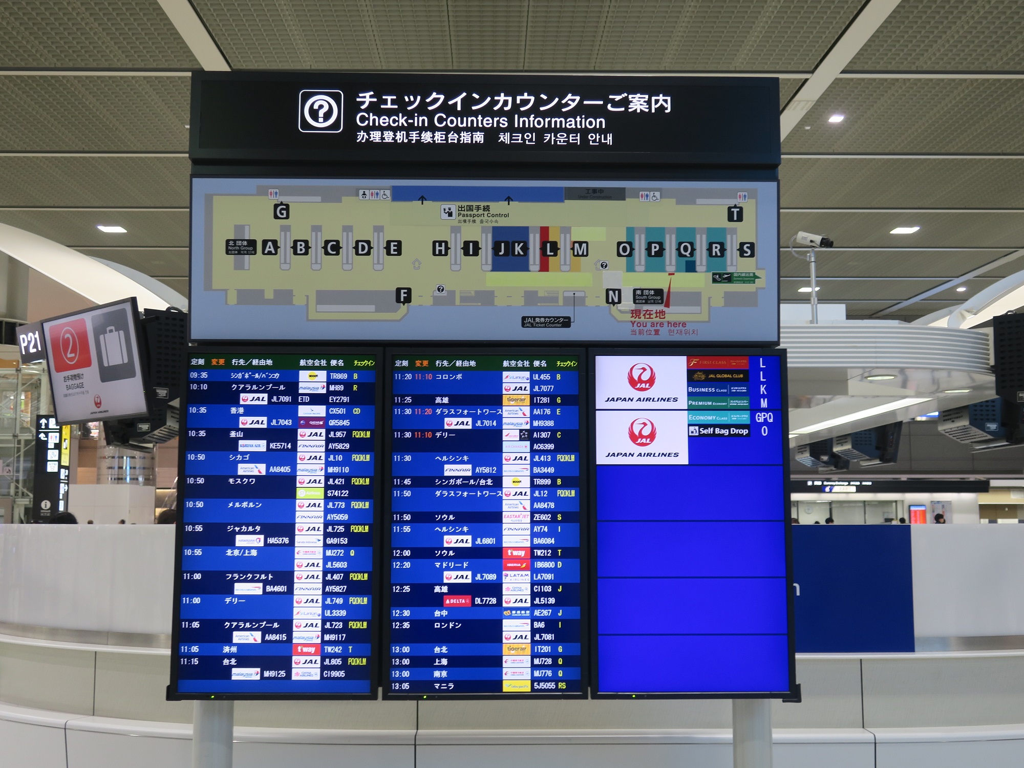 航空会社ごとのチェックインカウンターの場所は、チェックインカウンター案内に表示されています。