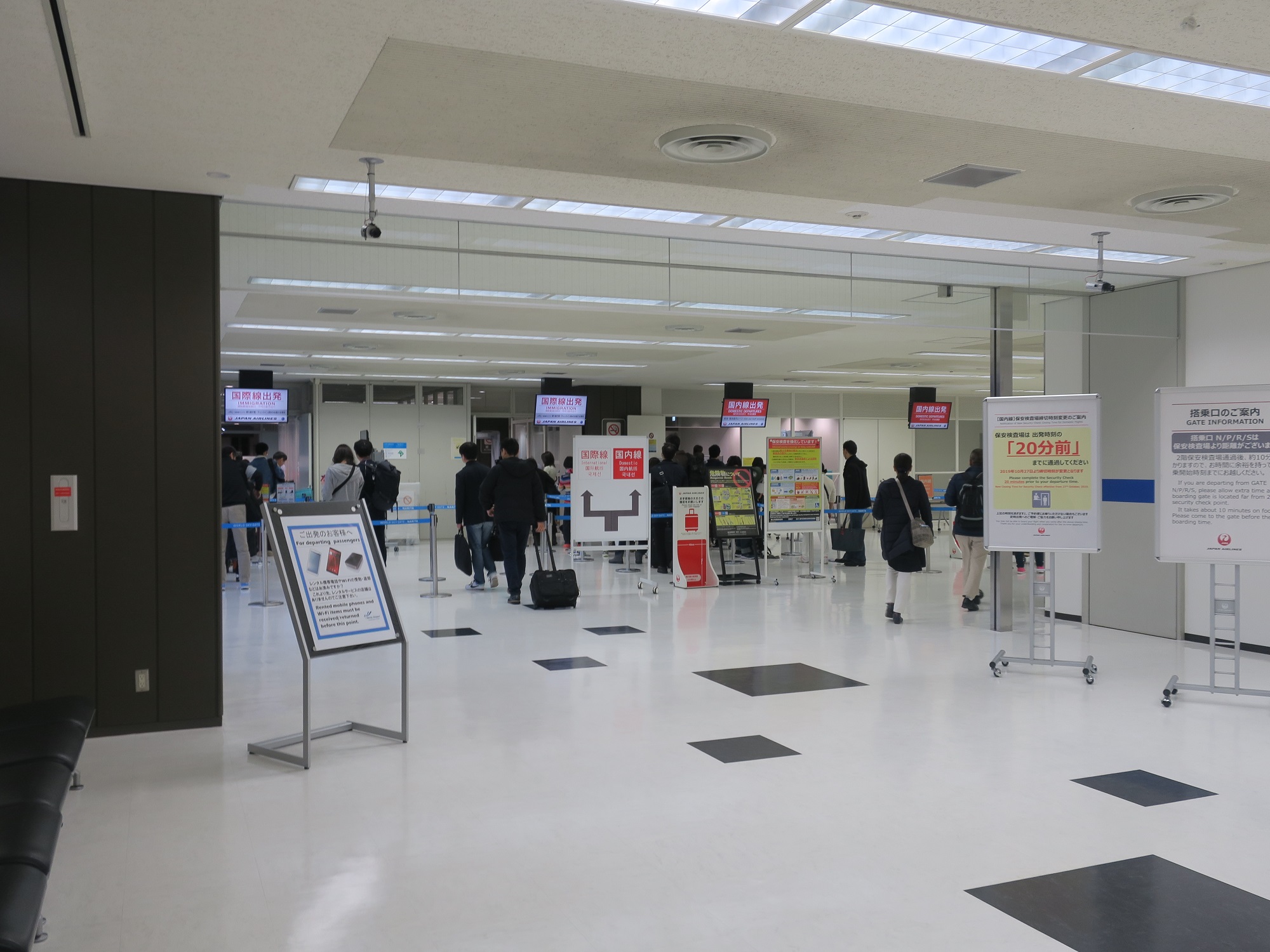 こちらが、国内線の出発ロビーです。チェックインを済ませたら、奥にある階段・エスカレーターで2階に進みます。