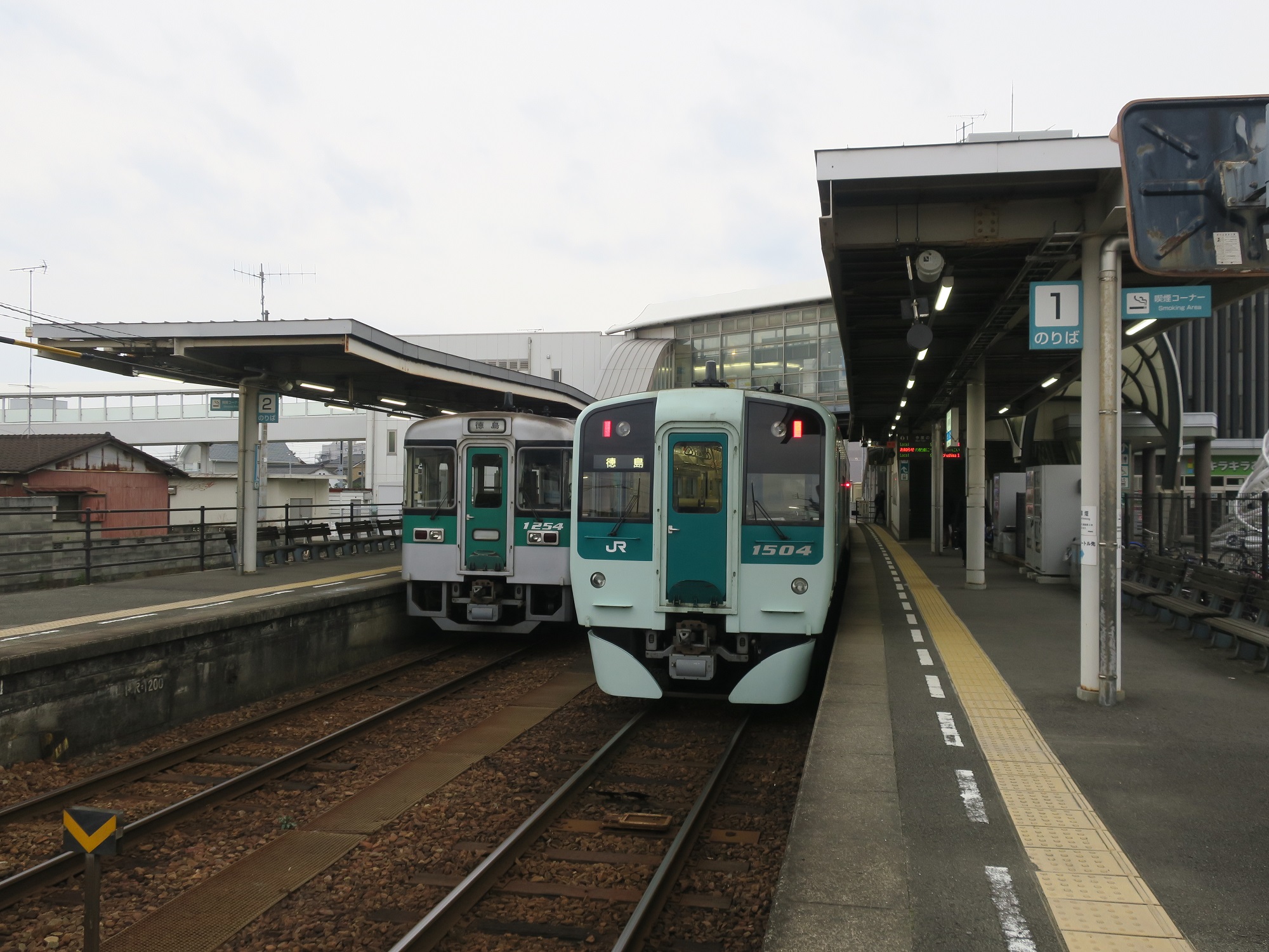 ホームは2つあります。左が2番線、右が1番線です。行先別にホームが分かれているわけではありません。徳島方面行き、海部方面行き共に、両方のホームを使います。