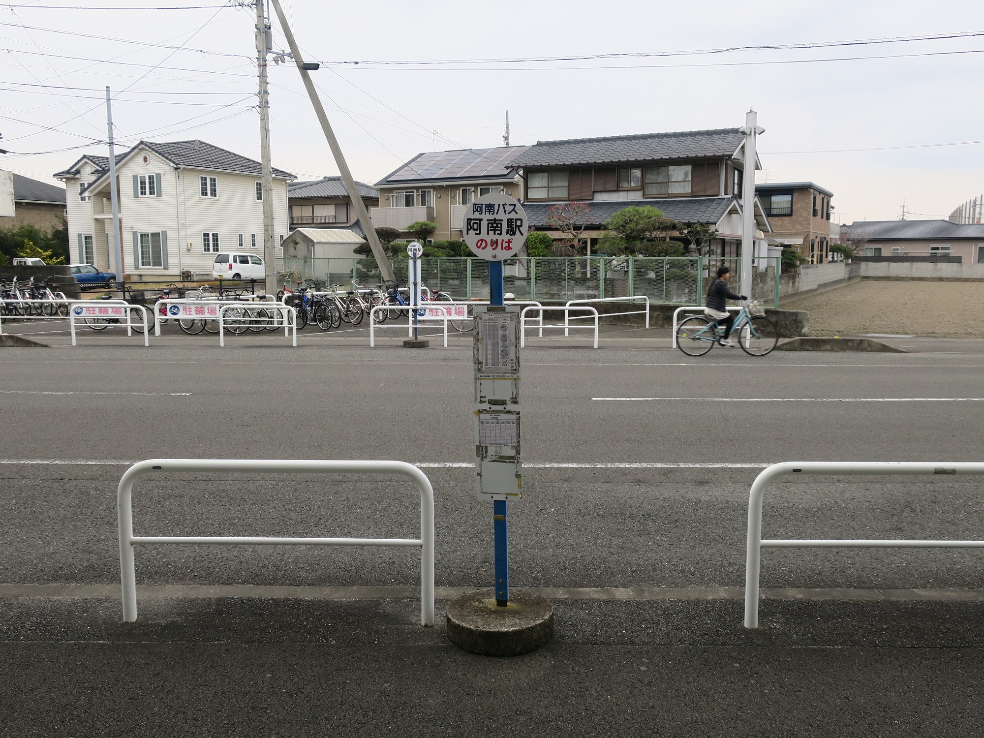 阿南バスの停留所です。阿南市内を循環するバスは、ここから乗ります。徳島バスの停留所ではありませんので、ご注意くださいませ。