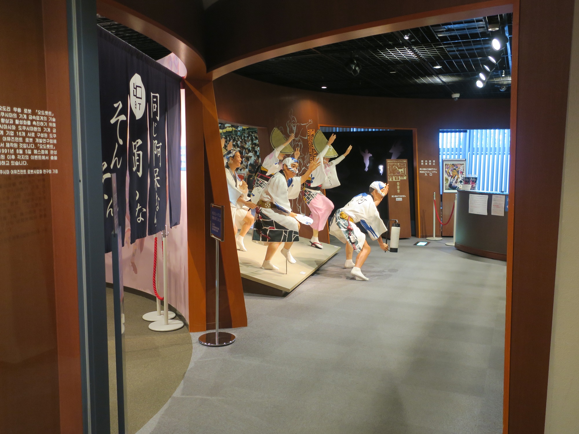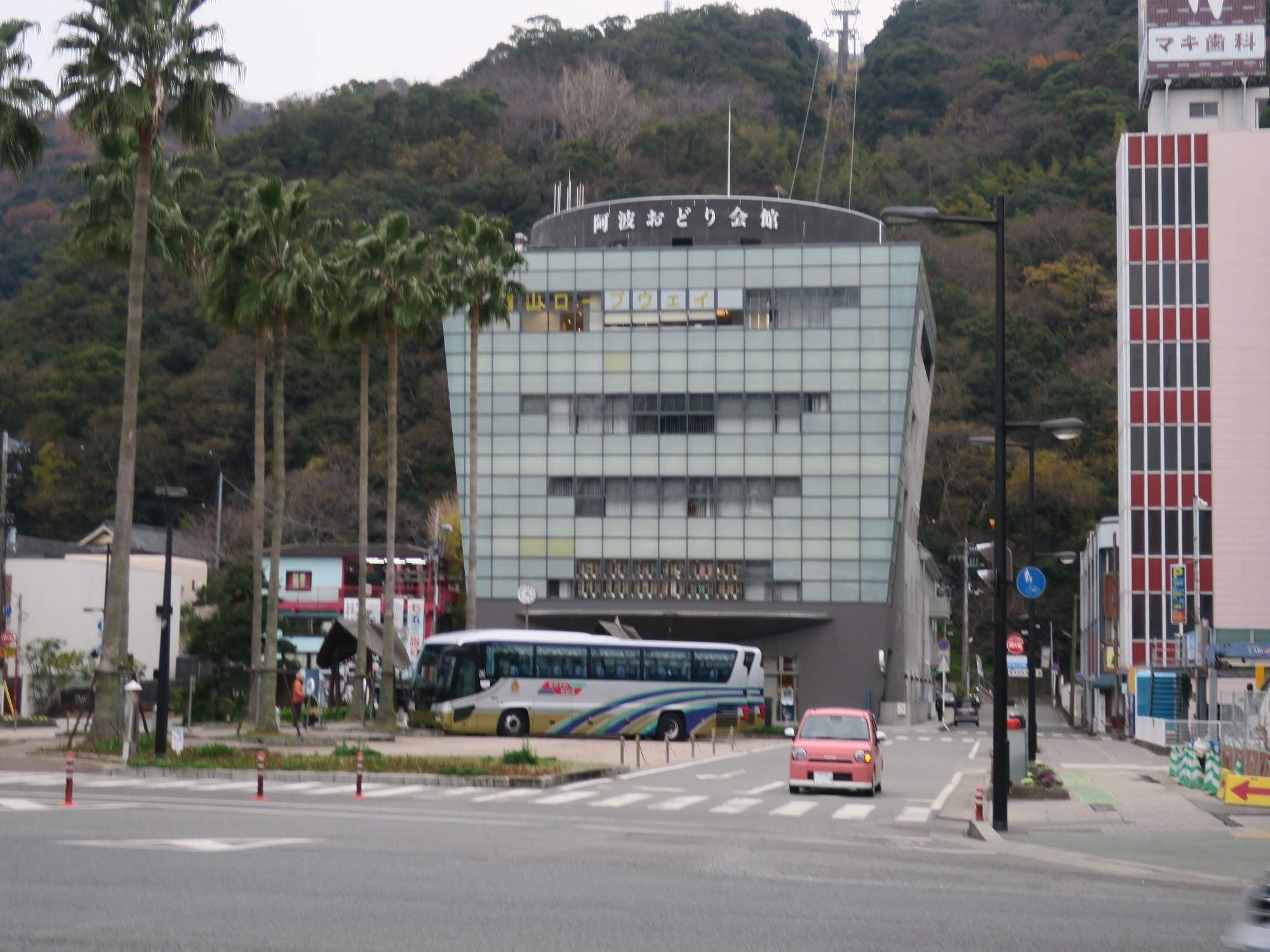 阿波踊り会館です。1階がフロントと売店、2階が阿波踊りホール、3階が阿波踊りミュージアム、5階が眉山ロープウェイの山麓駅です。なので、眉山ロープウェイに乗る人は、まず阿波踊り会館に行くことになります。