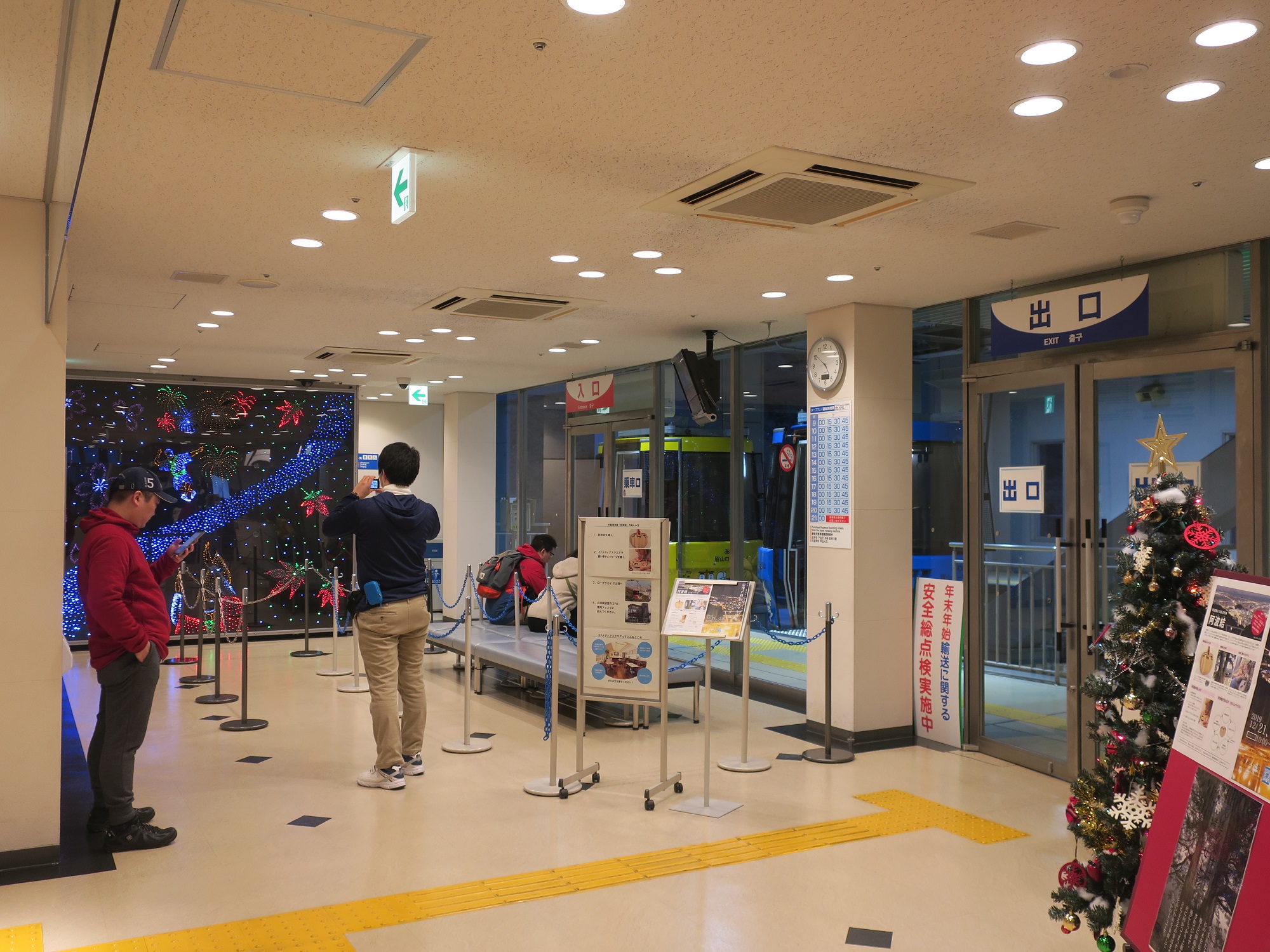 でもって、こちらが入り口です。発車時間3分前になると、扉が開いて改札が始まります。