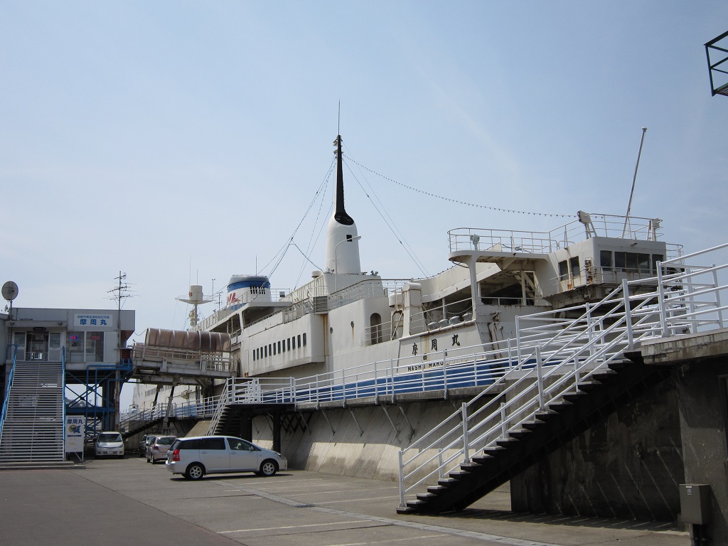 摩周丸にも、連絡船の特徴でもある、貨物列車を搭載するための口がついています。連絡船って、カーフェリーの列車版ですからねぇ。