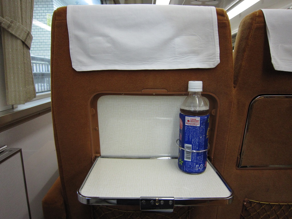 この他にも跳ね上げ式のテーブルがありまして、座席を向い合せにしてもテーブルが使えます。ただし、かなり高い位置についてまして、ここにPCを置いて操作するのはちょっと辛いですね。なので、基本的にPCは膝の上ですね。