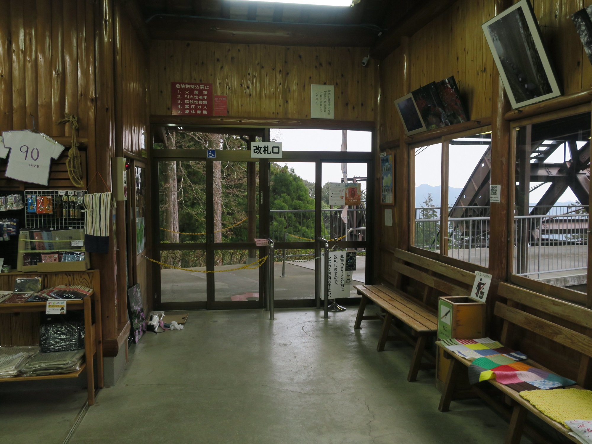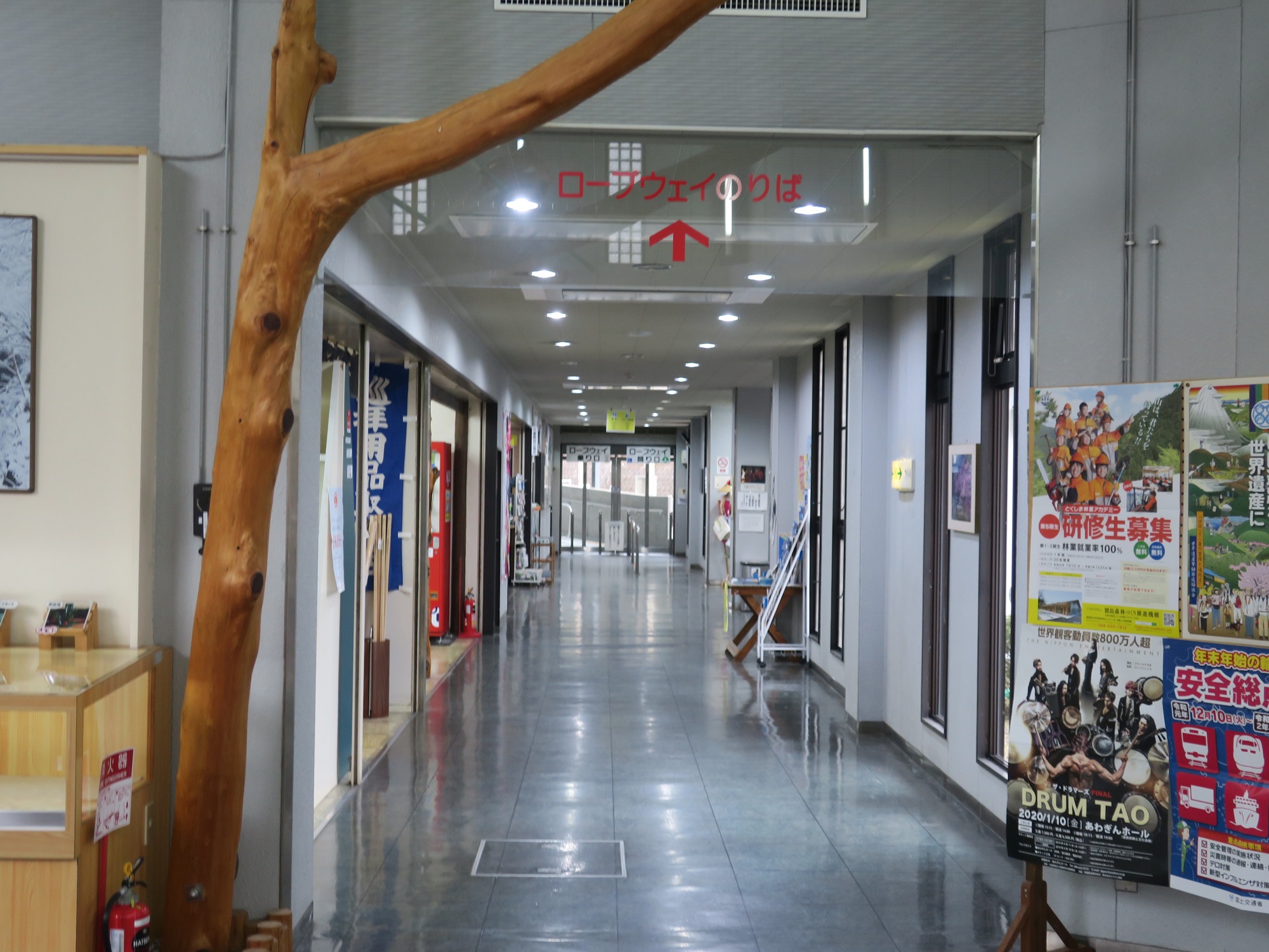 道の駅 鷲の里の建物内をずーっと奥に進んでいくと、ロープウェイ乗り場があります。切符もここで買います。