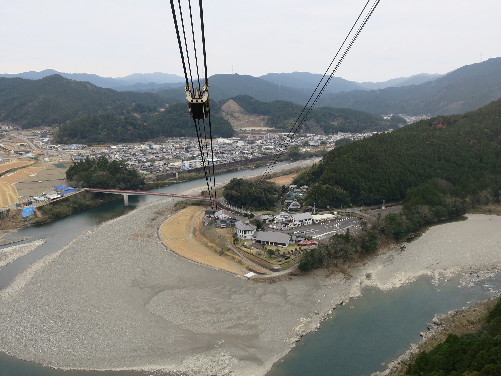 ゴンドラからは那珂川が見えます。やはり西日本一の長さだけあって、かなり高いところまで登ります。1号支柱に近づくと、かなり揺れます。