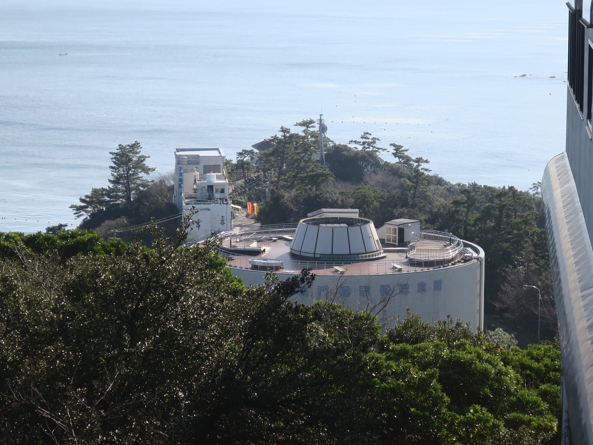 鳴門山展望台から見ると、こんな感じ。大鳴門橋架橋記念館エディの先に、お茶園展望台が見えます。