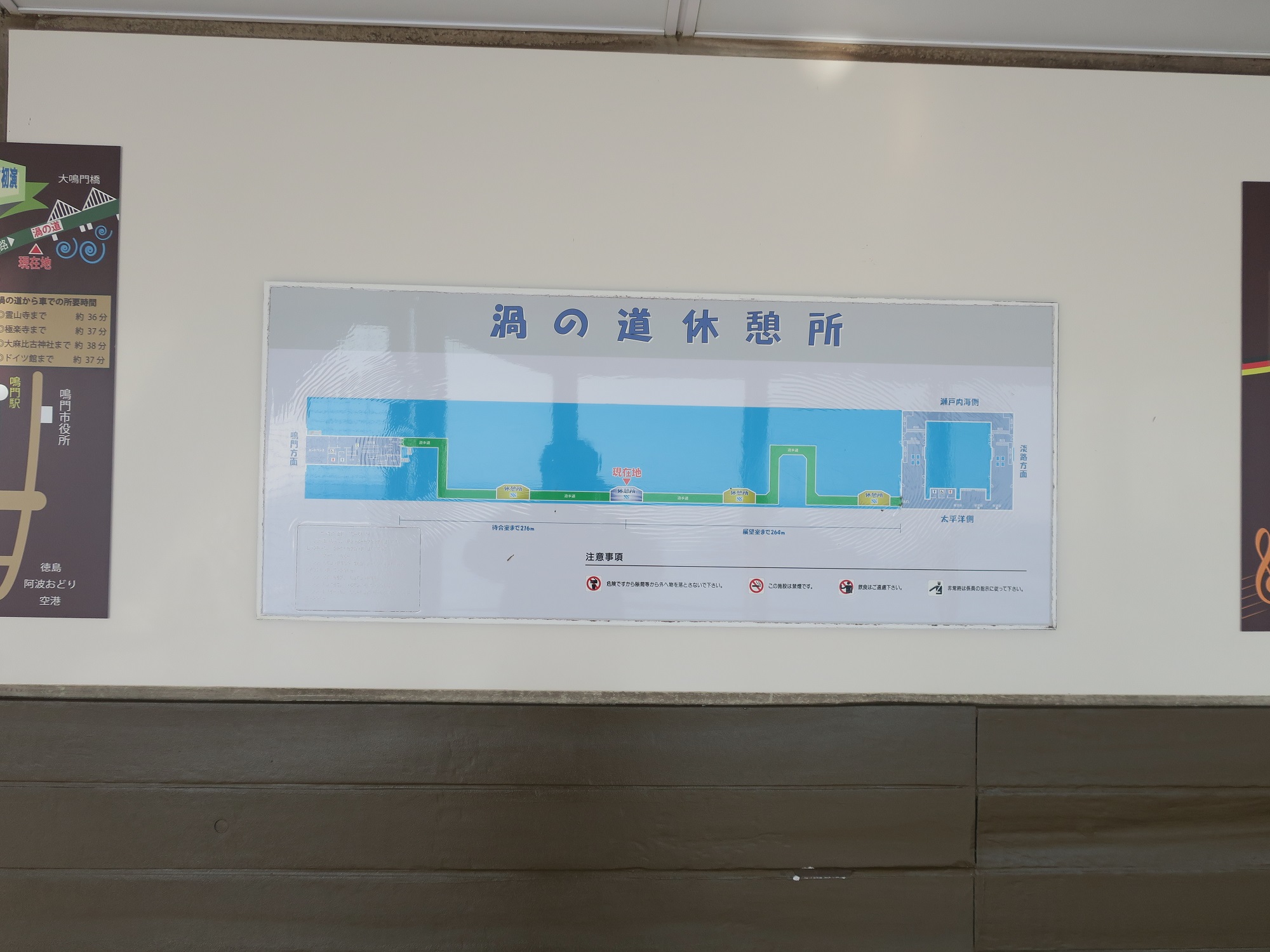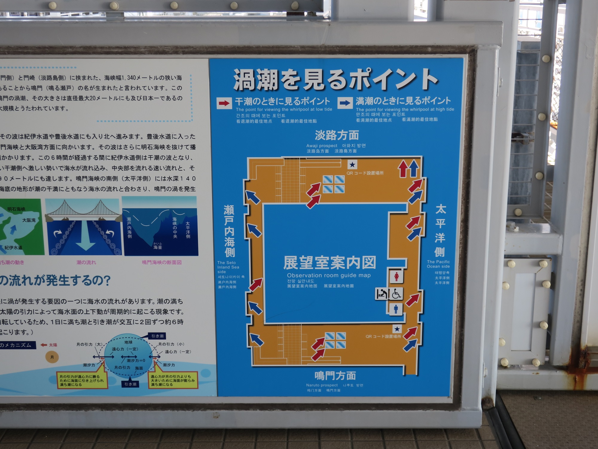 展望室からは、時間帯によっては渦潮が見えます。どこから見えるか案内があります。