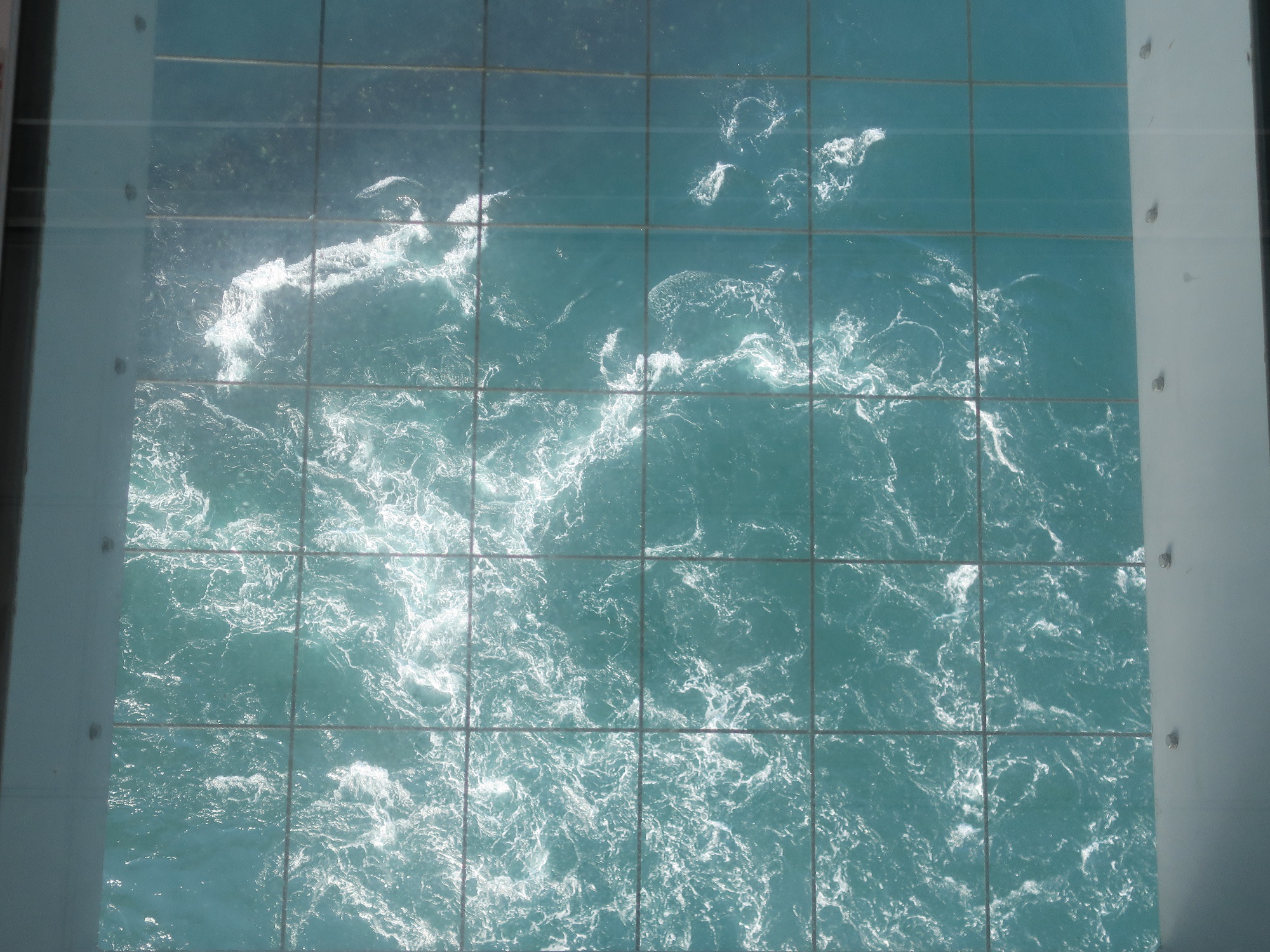 遊歩道にはガラス張りになっている箇所がありまして、渦潮を上から見ることができるんです。でも、これかなり怖いです。