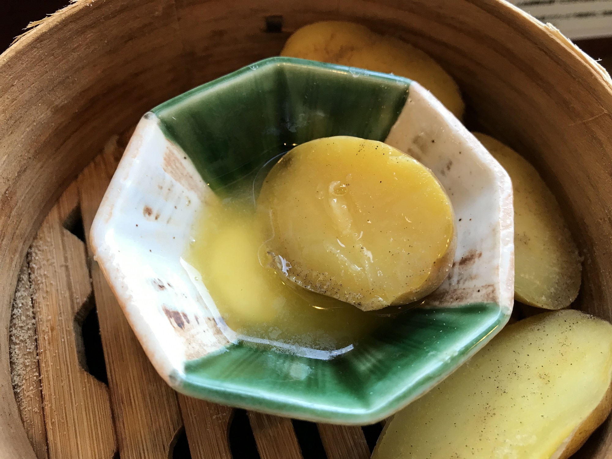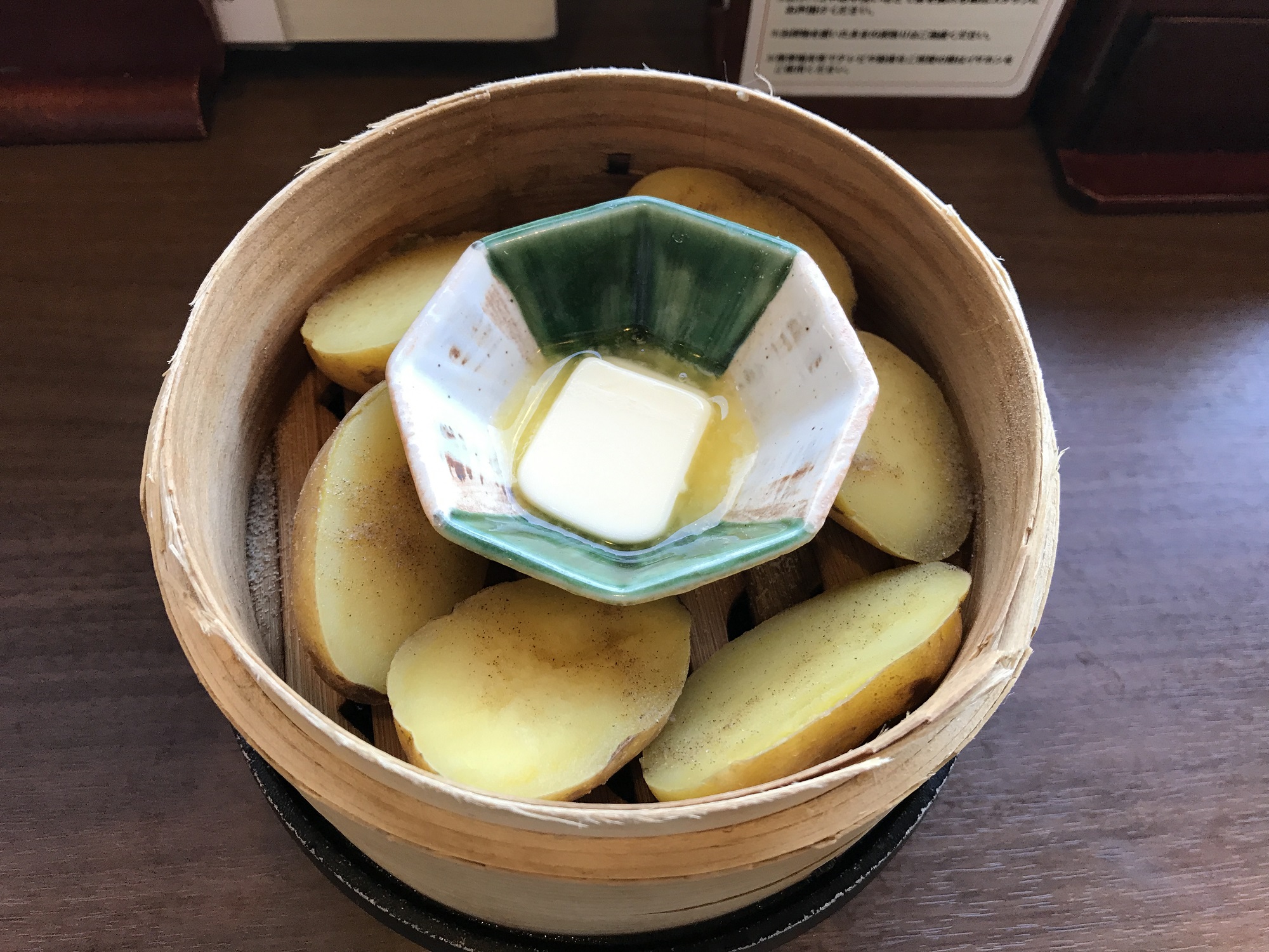 続いて、インカのめざめバター。せいろ蒸しになって出てきました。お値段は580円でした。