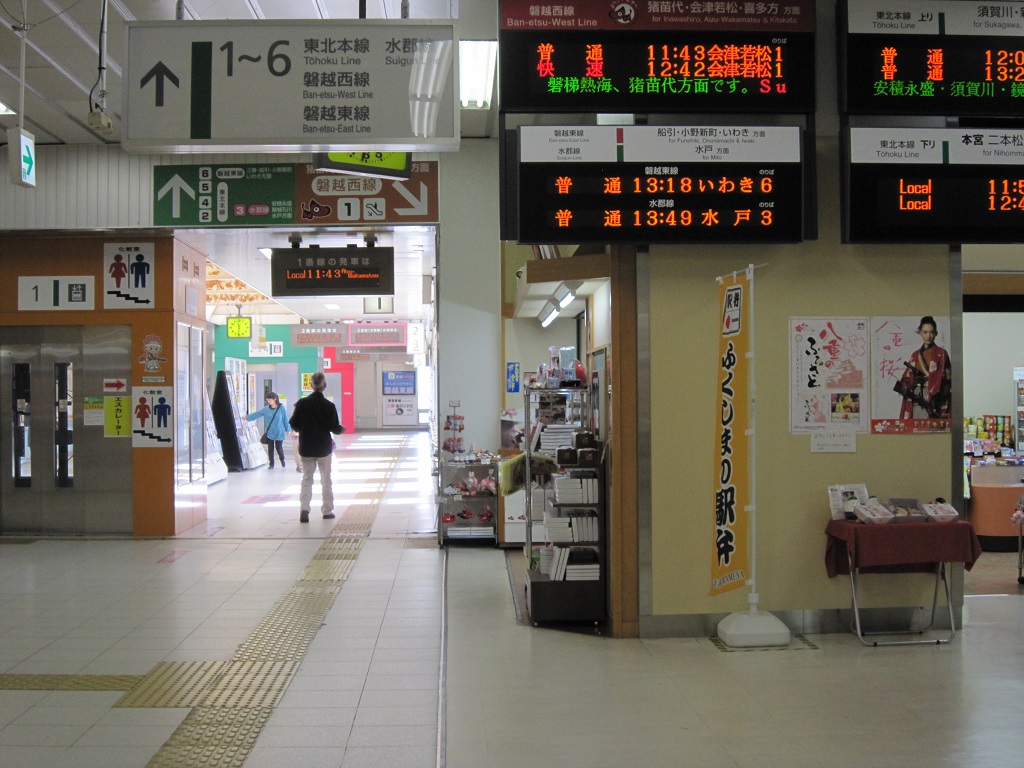 郡山駅には東北新幹線の他、東北本線、磐越東線、磐越西線、水郡線の列車が乗り入れています。キューティー吉本は、ここで磐越西線に乗り換えます。