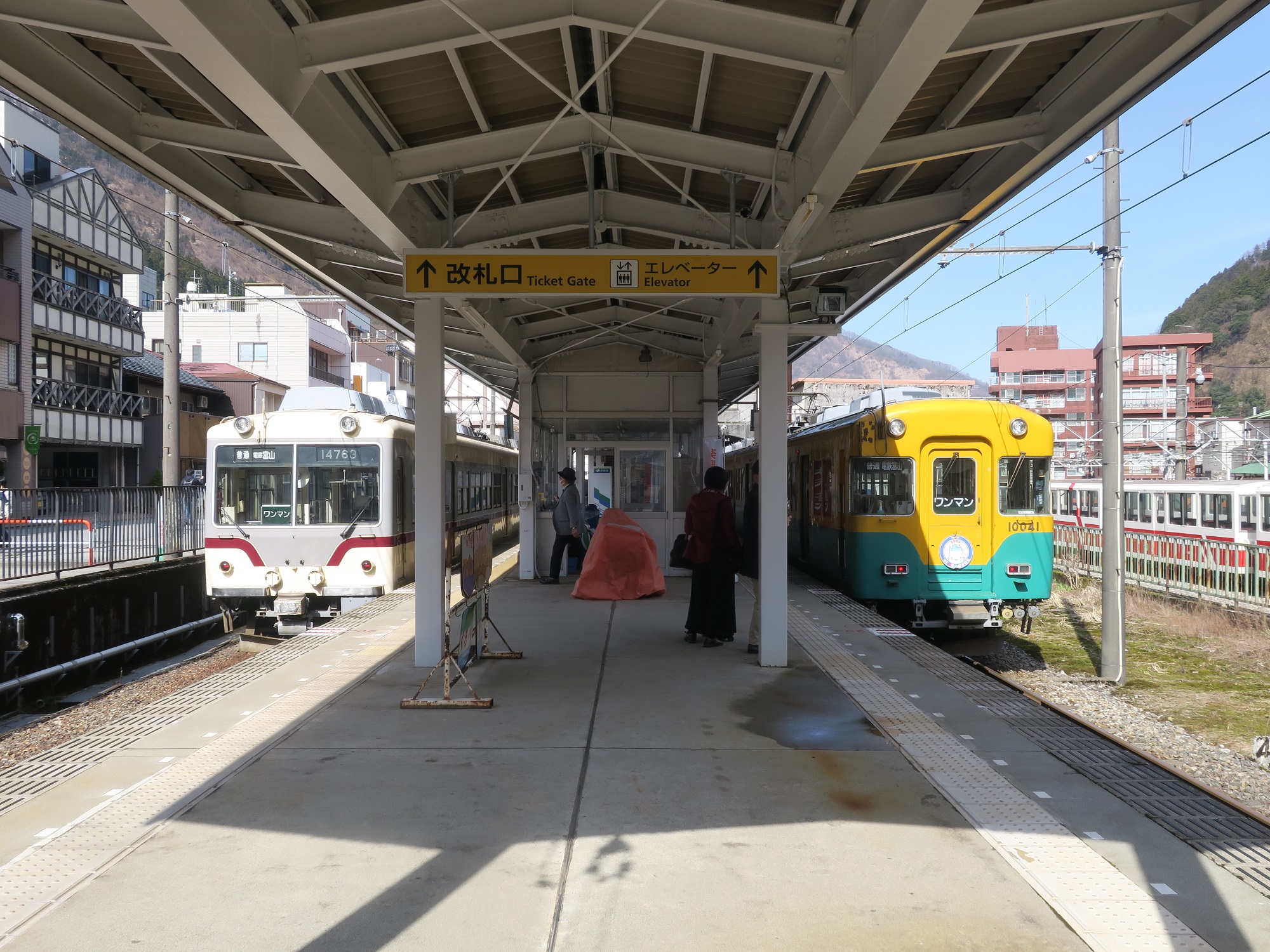 富山地方鉄道本線の終着駅、宇奈月温泉駅です。宇奈月温泉の最寄り駅で、黒部渓谷鉄道トロッコ列車の宇奈月駅との乗換駅です。
