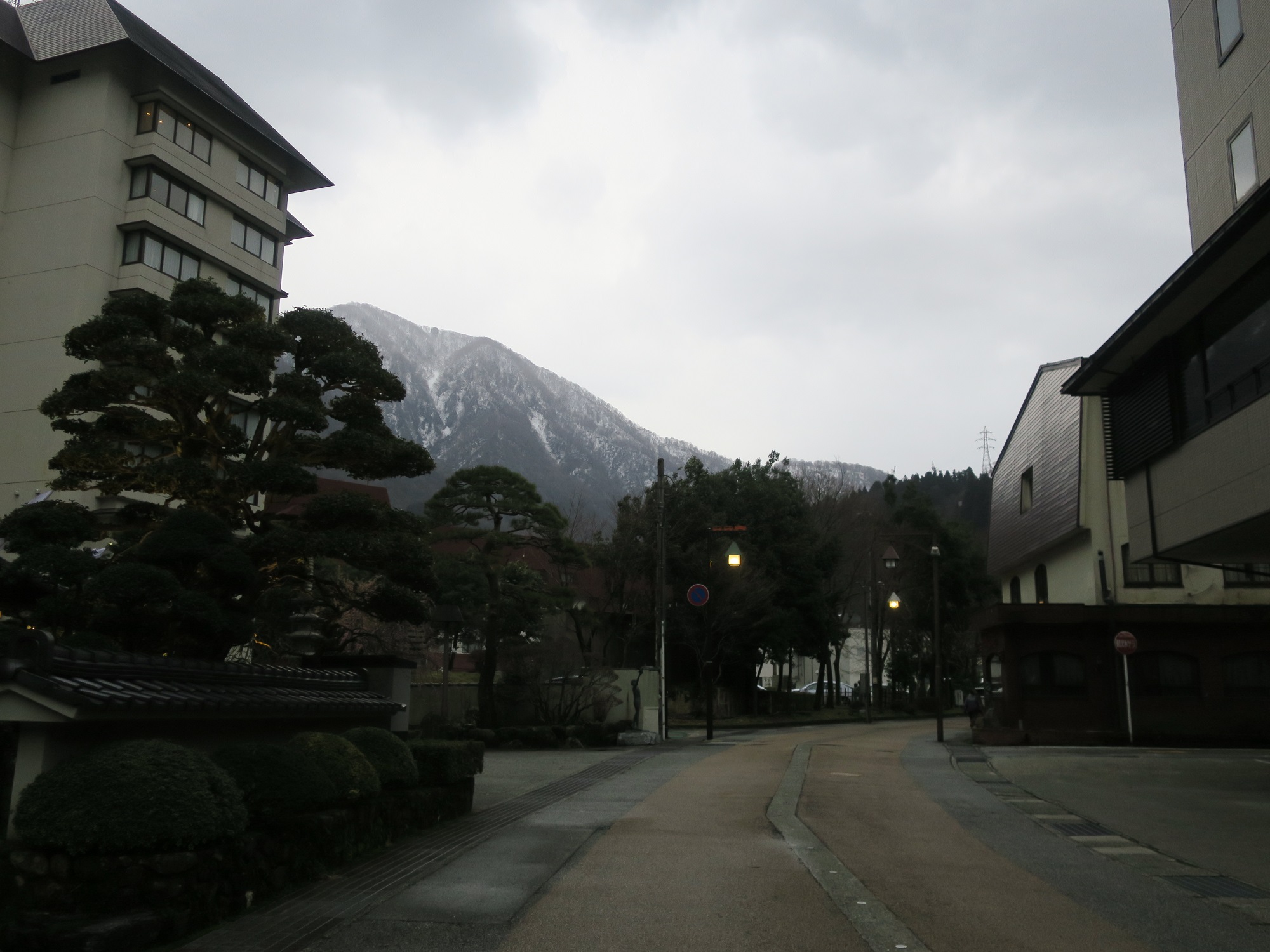 宇奈月温泉駅から踏切を抜けると、こんな感じ。写真左奥にあるのが日帰り温泉、宇奈月温泉総湯です。ここが、宇奈月温泉の観光案内所を兼ねています。