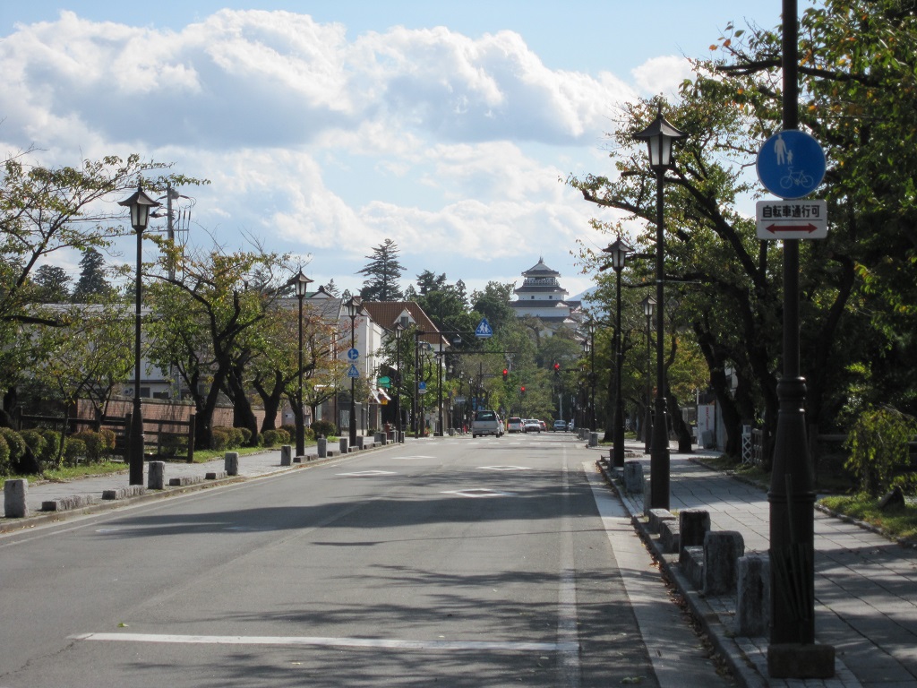 そこを更に西へ歩くと、鶴ヶ城が見えてきます。ちなみに、この途中に歓楽街があります。うーん、会津若松駅から鶴ヶ城方向へ歩いたところにあるとは。