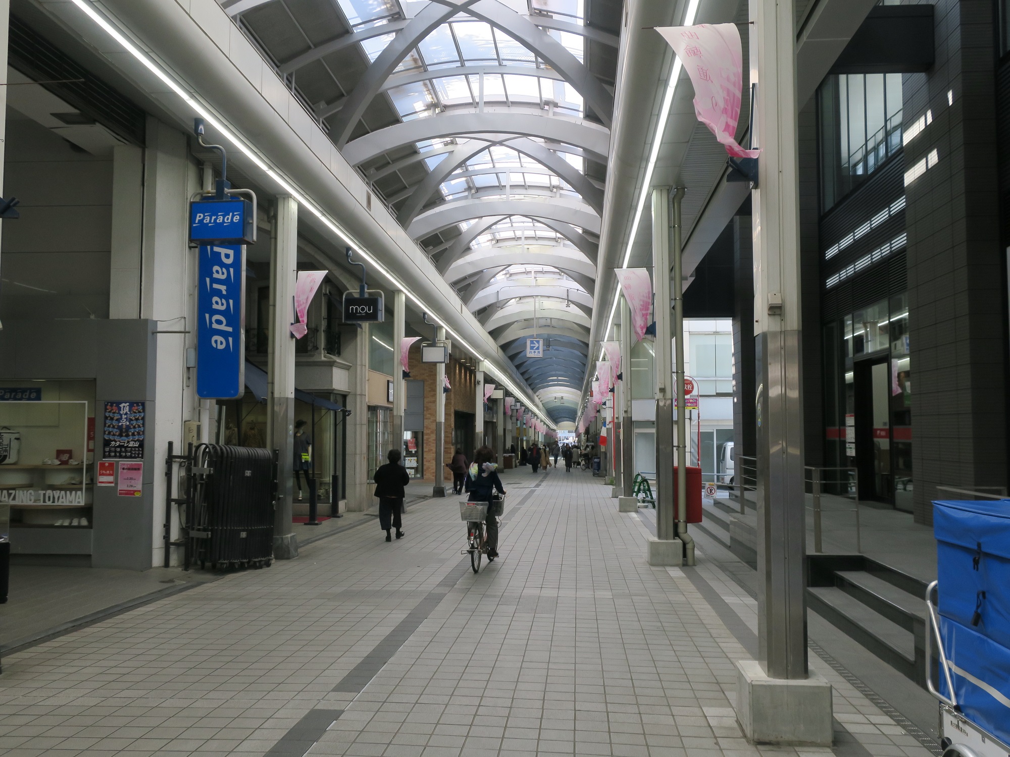 総曲輪商店街の中は、こんな感じ。ちょっと前まではシャッター街になりかけていたのですが、最近では再開発が進んできまして。お店も増えていて人通りも増えてきています。