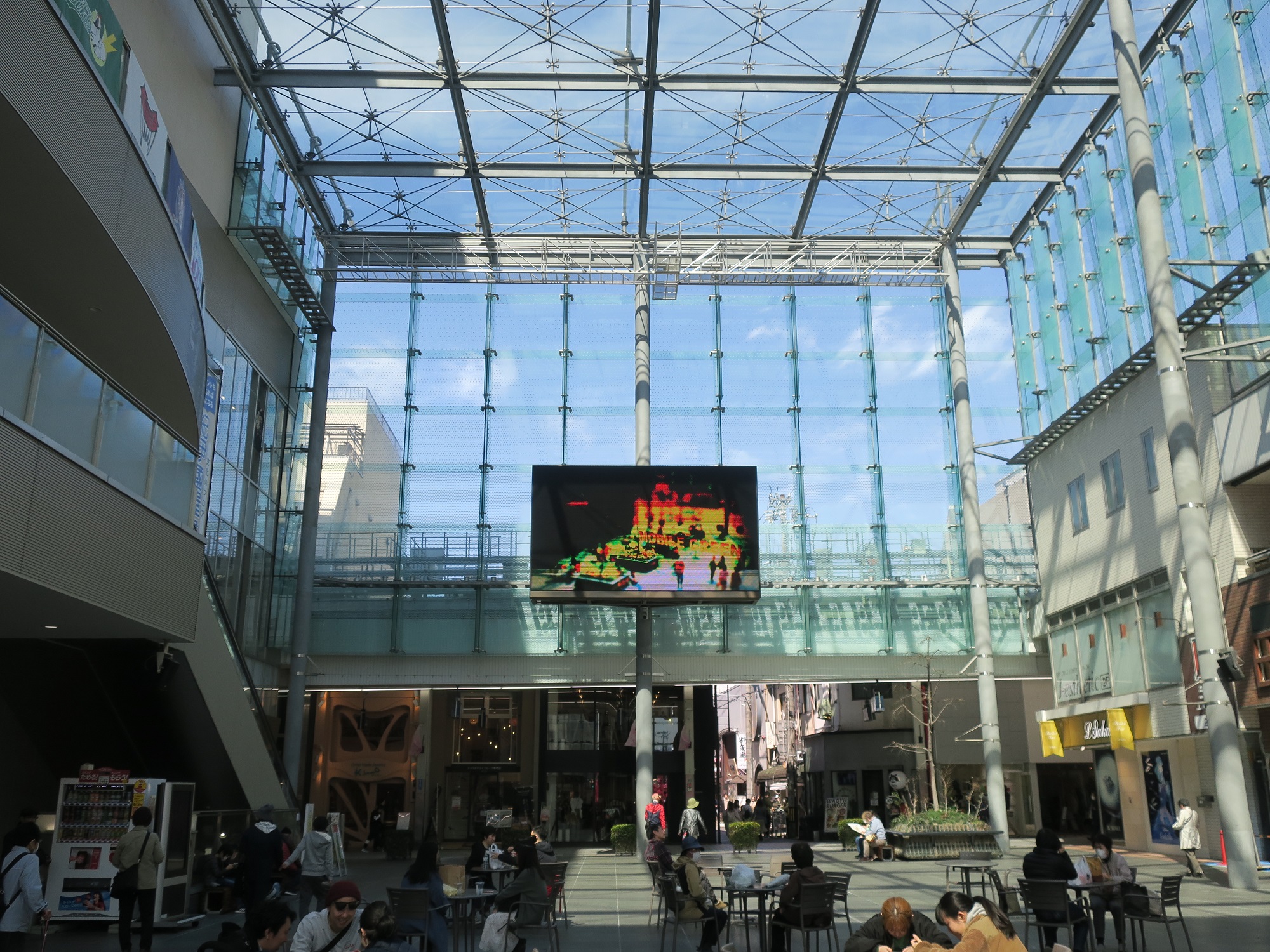 総曲輪フェリオのすぐ隣は広場になっていて、大型テレビが設けられています。