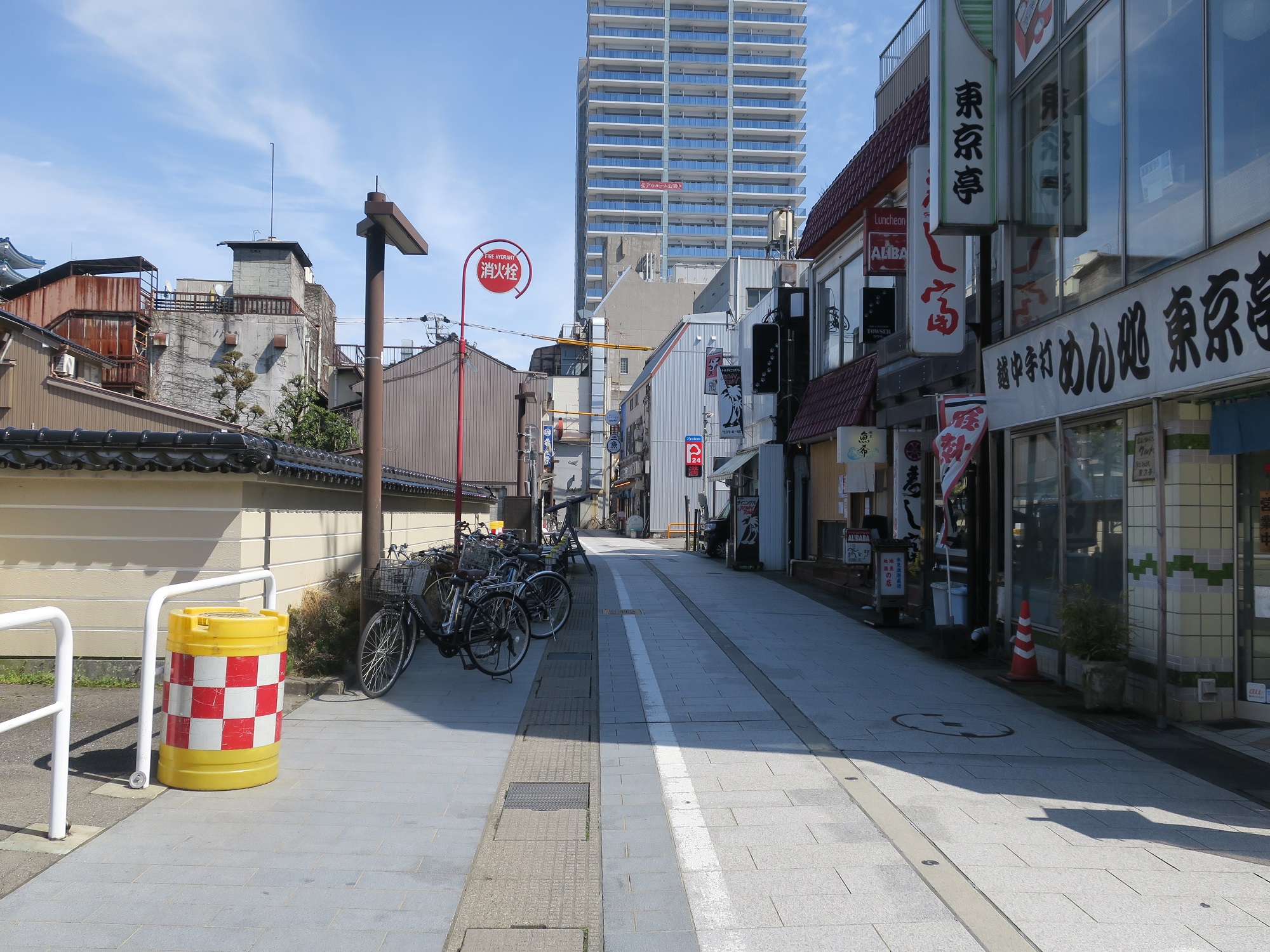 富山市 総曲輪 一歩路地を入ると飲食店が立ち並びます