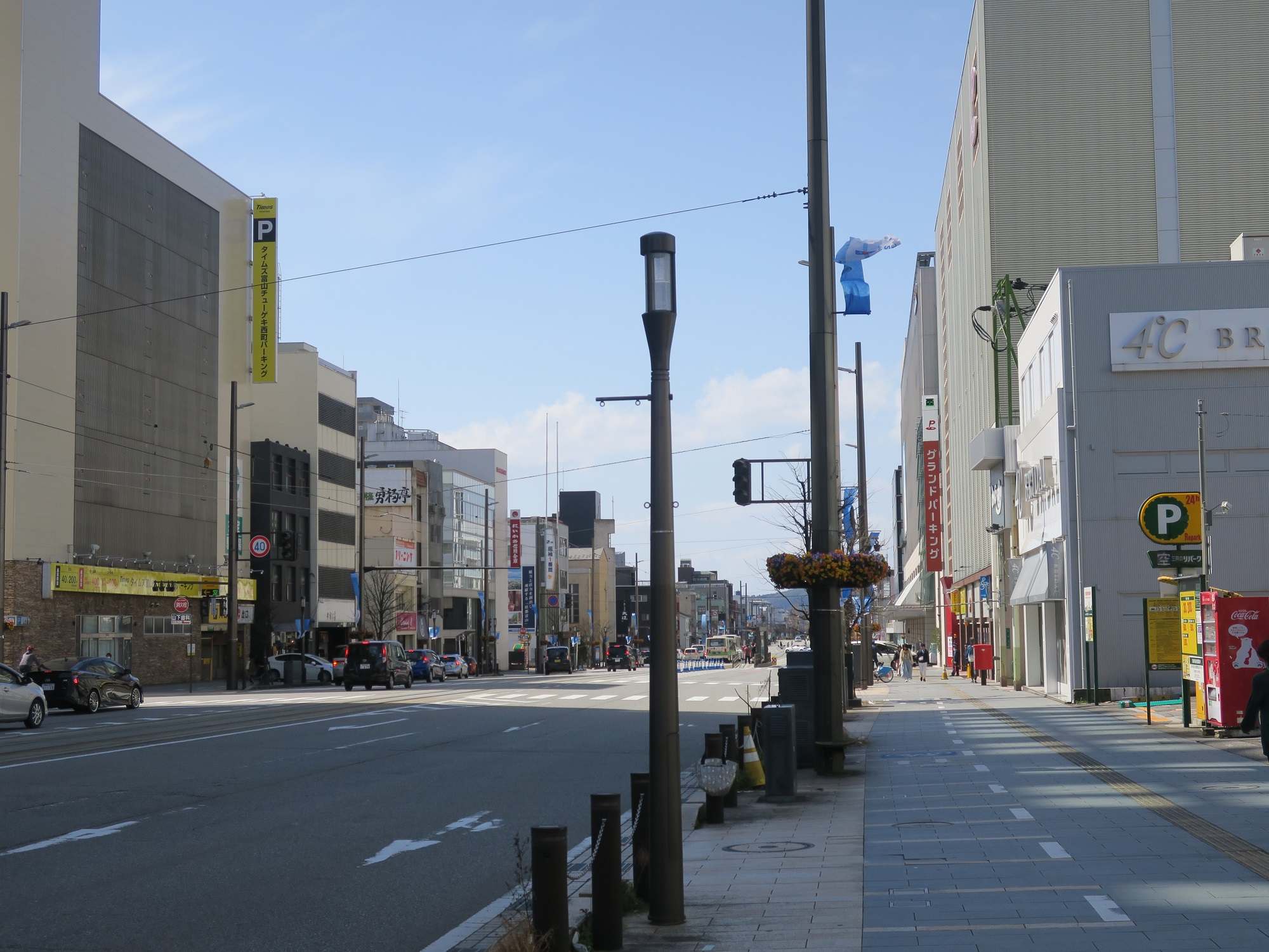 富山市 平和通り 総曲輪通りの一本南で市内電車が走ります