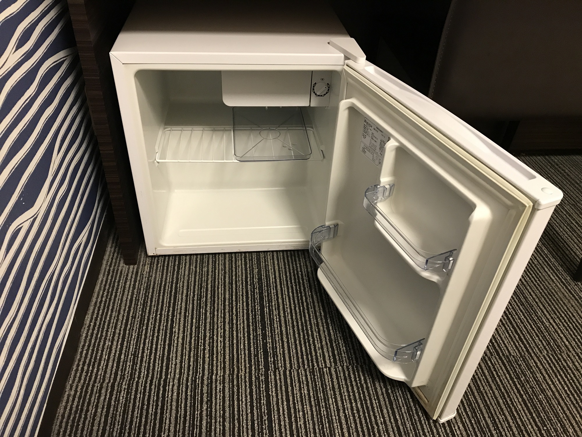 冷蔵庫の中は空です。飲み物の自動販売機は、ほぼ各階に設置されています。