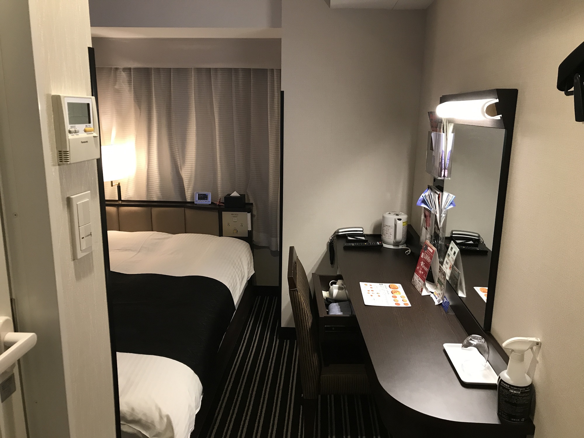 まず、交通にも飲みに行くにも便利な場所にあること、デスクが広くて使いやすいこと、ACコンセントが多いことが、このホテルの利点です。半面、お風呂は狭く、使い勝手に難ありで、はっきり言って事実上のシャワールームです。そこは目をつぶれる方であれば、十分お勧めできますが、キューティー吉本的にはお風呂がないときついので、はっきり言って次はないかなって思っています。