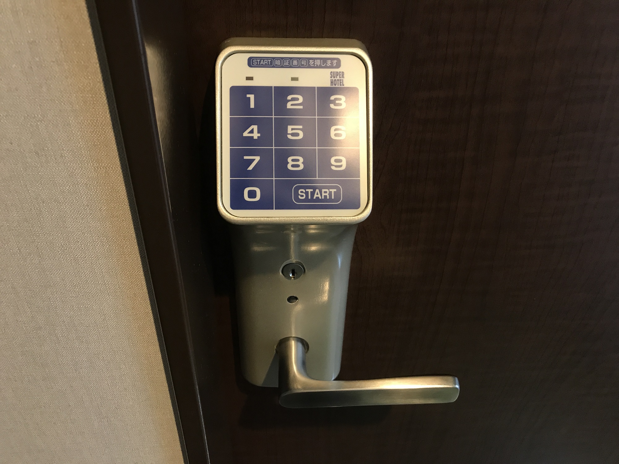 スーパーホテル 東京・芝 客室の扉のハンドル 暗証番号を入力する仕組みになっています