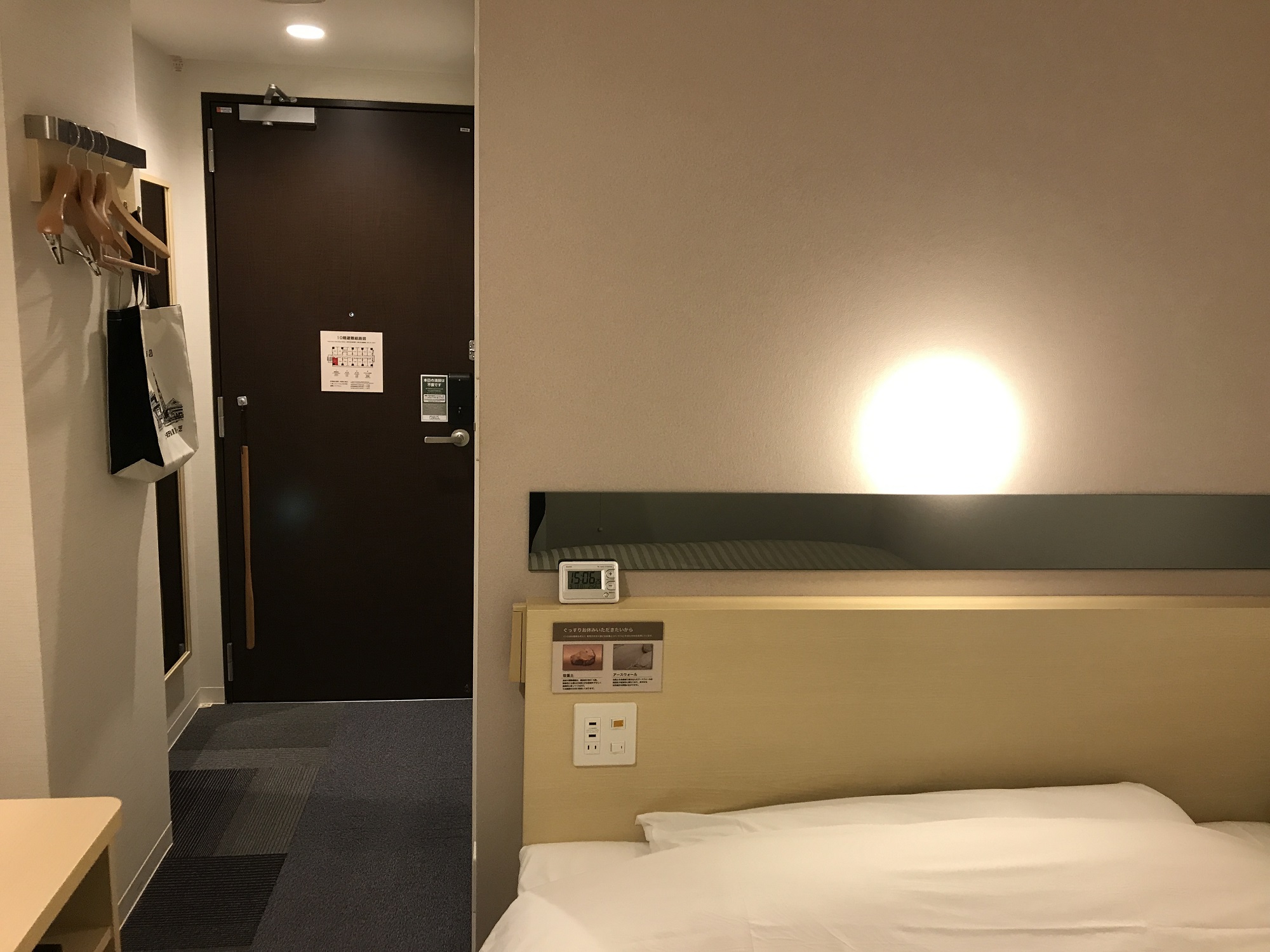 スーパーホテル 東京・芝 シングルルーム 窓側から玄関方向を撮影