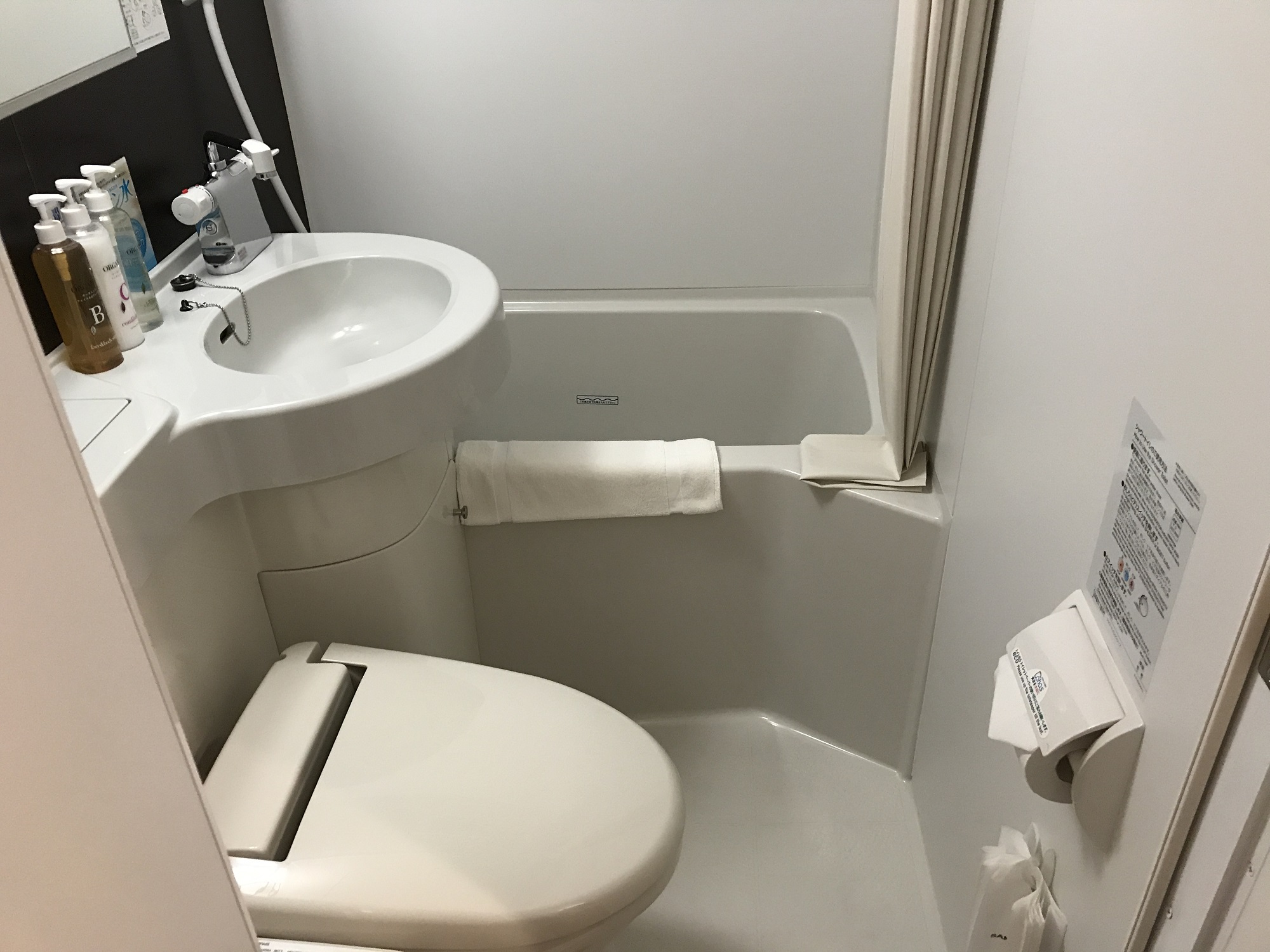 バスタブと洗面台です。正直バスタブはかなり狭め。シャワー利用と割り切った方がいいです。