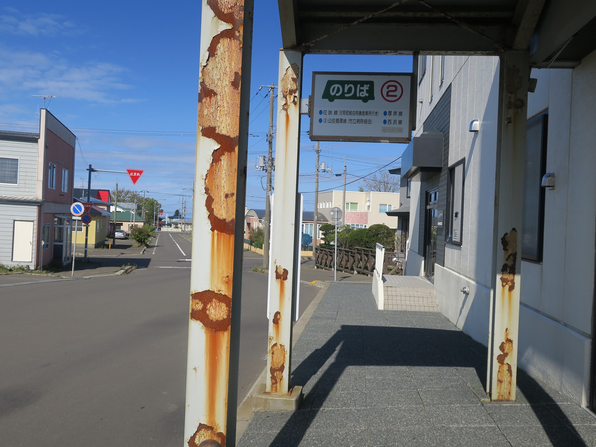 さすが北海道と言いますか、冬の寒い中バスを待つと凍えてしまうので、待合所があるバス停が結構あったりします。ただし、今にも朽ち果てそうな待合所も結構あったりします。