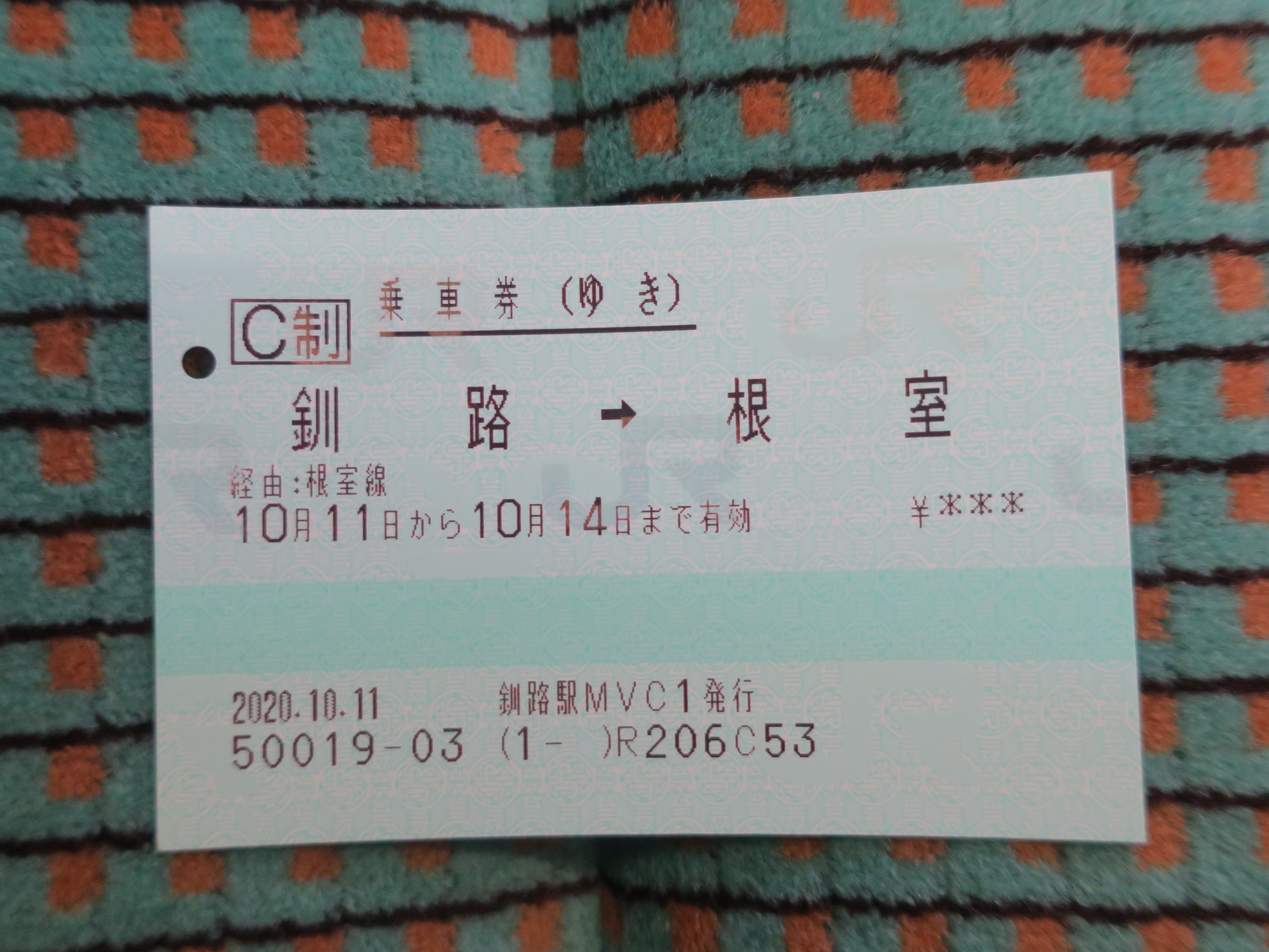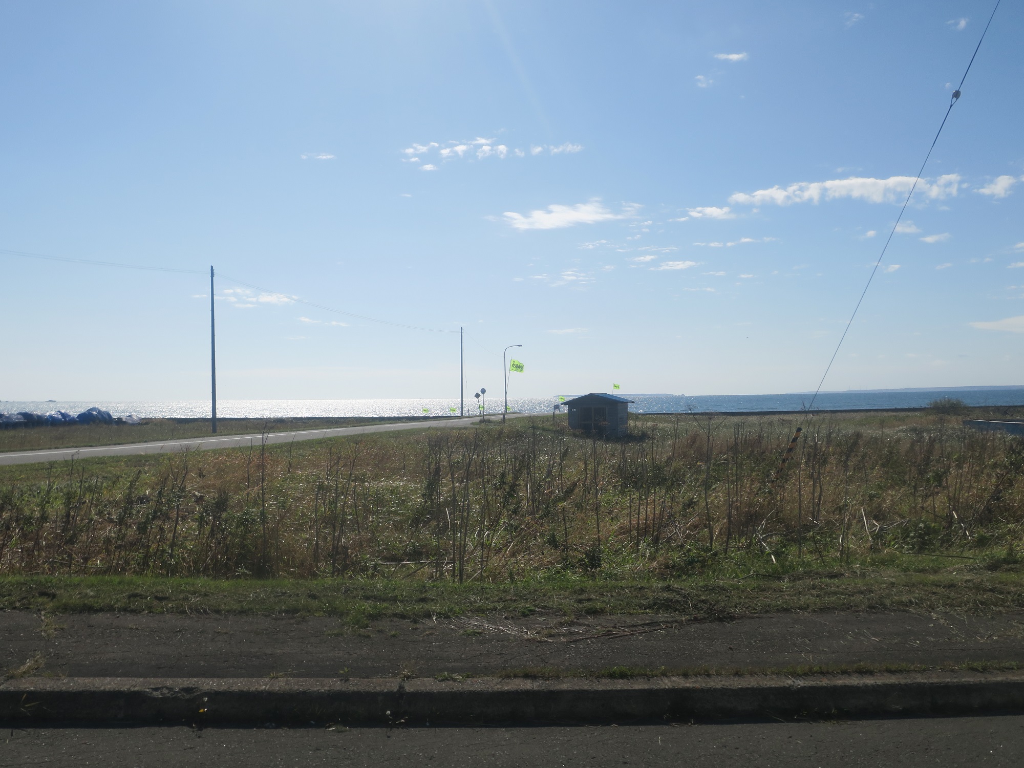 納沙布岬→根室駅前バスターミナル行きバスの車内です。よーく見ると海が見えるのがおわかりいただけますでしょうか。