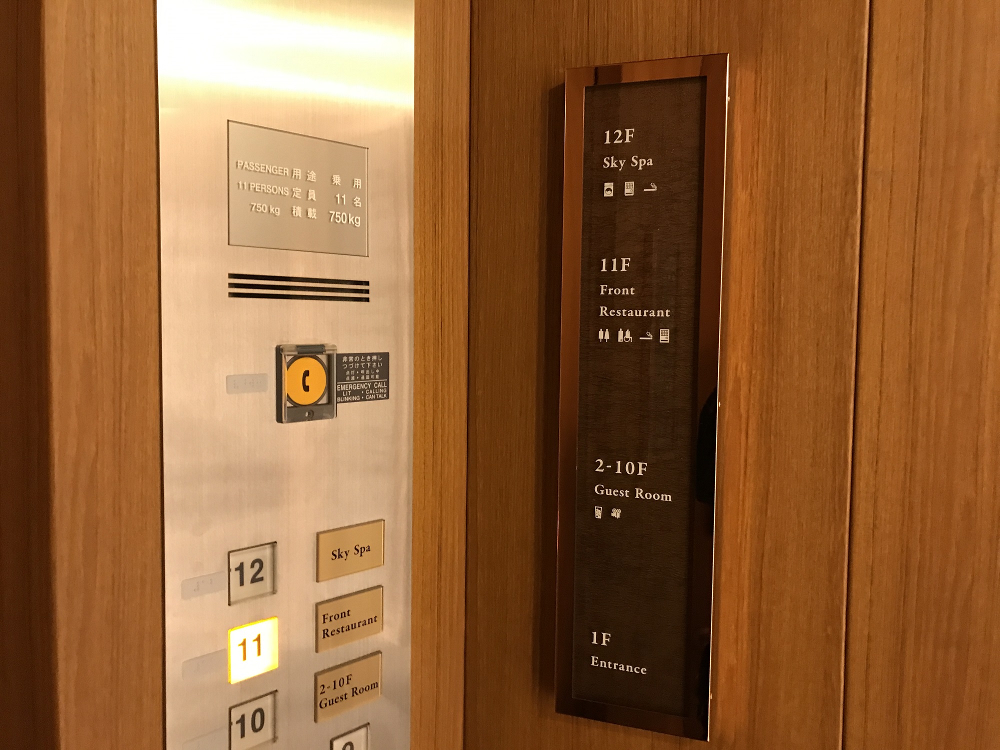 と書いてあってびっくり。フロントが客室階よりも上にあるという、キューティー吉本も今まで経験したことなかったパターンです。なお、カードキーがないと、客室階と12階のボタンを押せません。