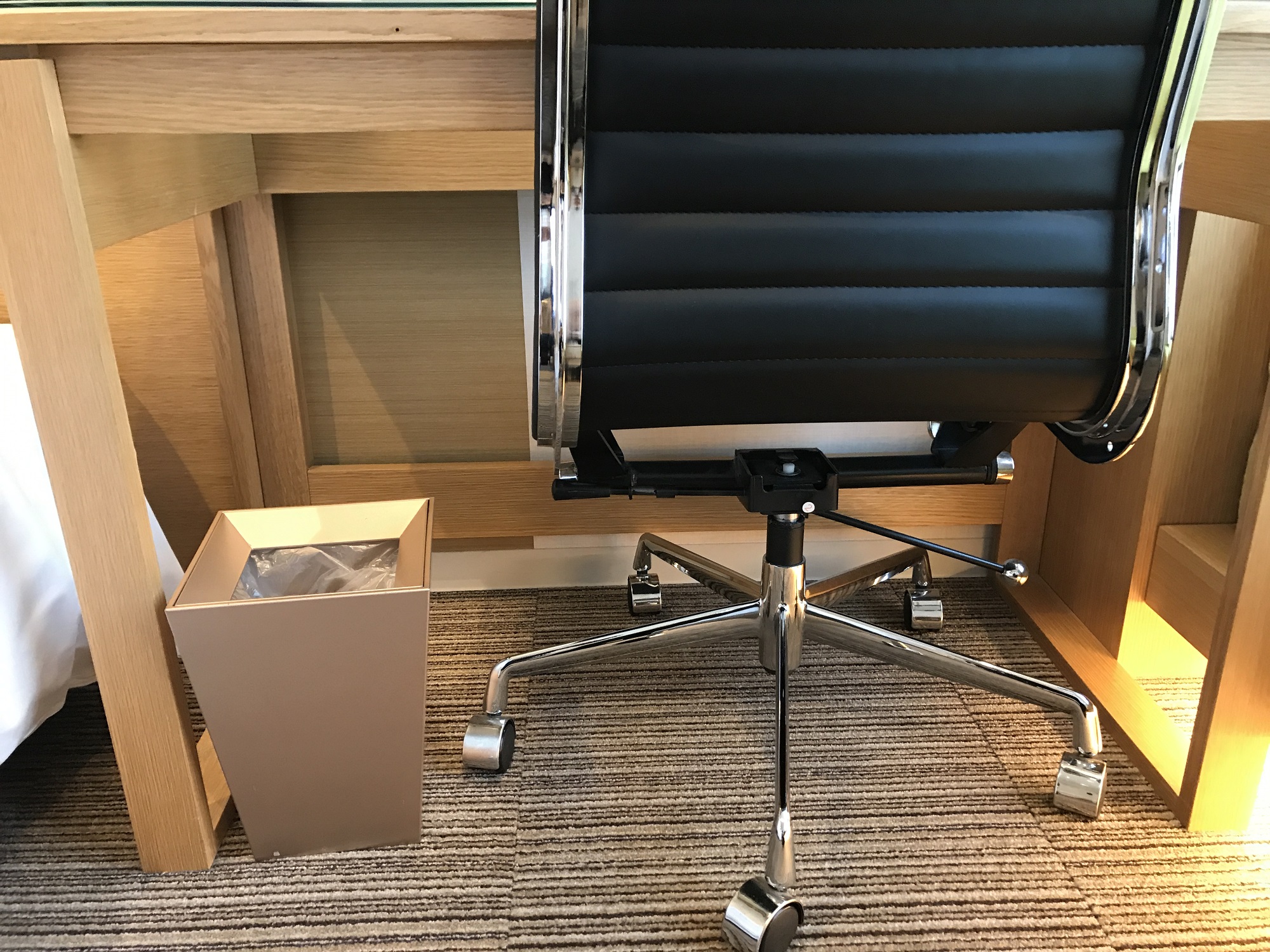 デスク下には、ゴミ箱があります。大きさは小さめなので、すぐいっぱいになるのが嬉しくないポイント。